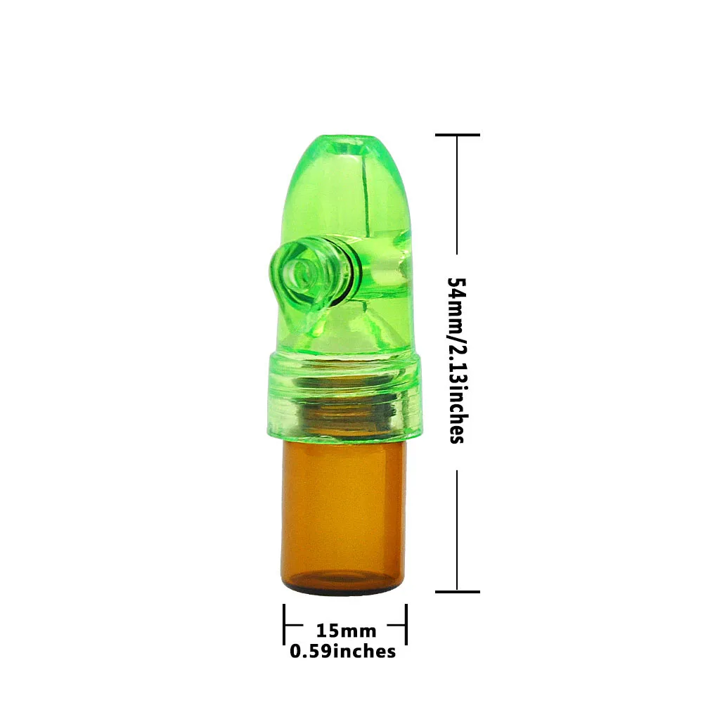 Материал: стекло и пластик Высота: 54 мм/67 мм/82 мм Вес: 7 г/11 г/13 г Цвет: черный/зеленый/красный/белый/синий Упаковка включает: 1 шт стеклянная пуля ракета Snuff Snorter