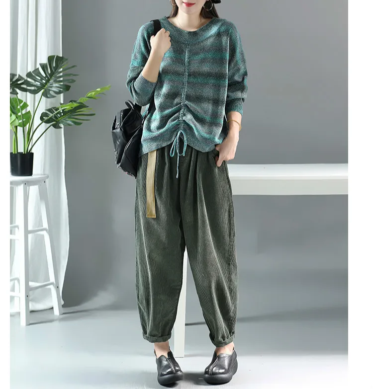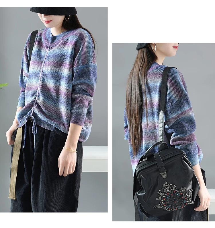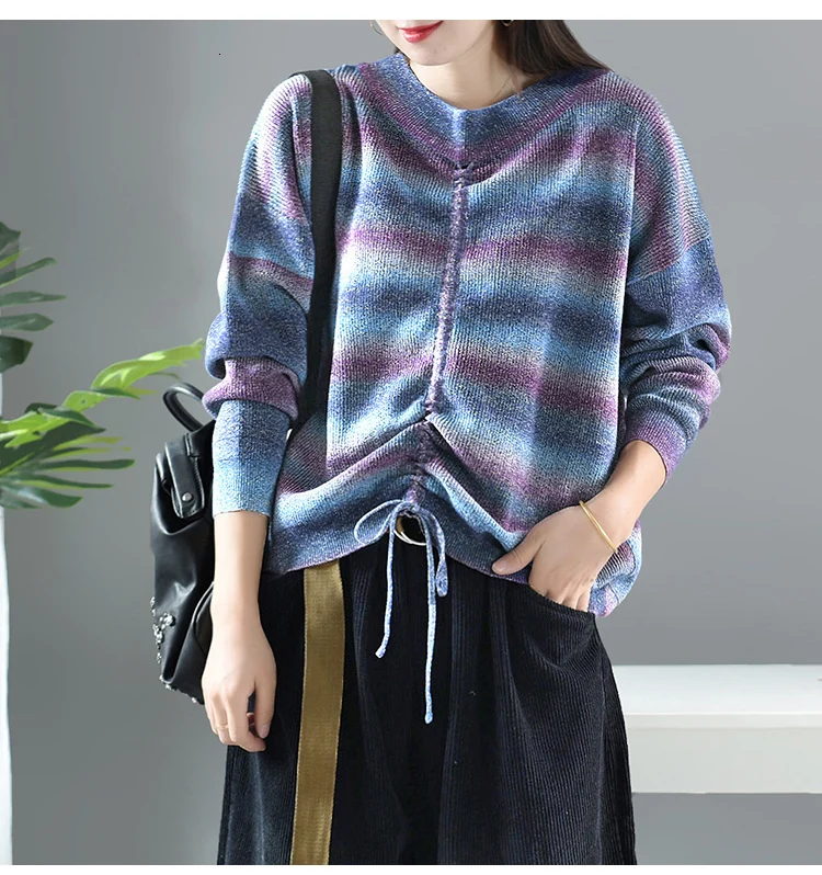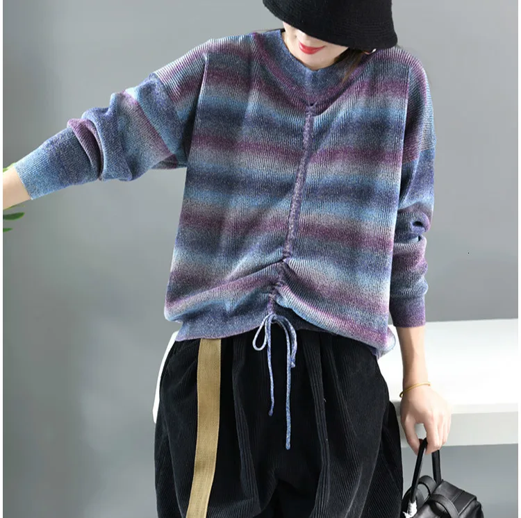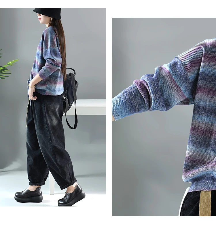 Модные корейские теплые полосатые трикотажные свитера