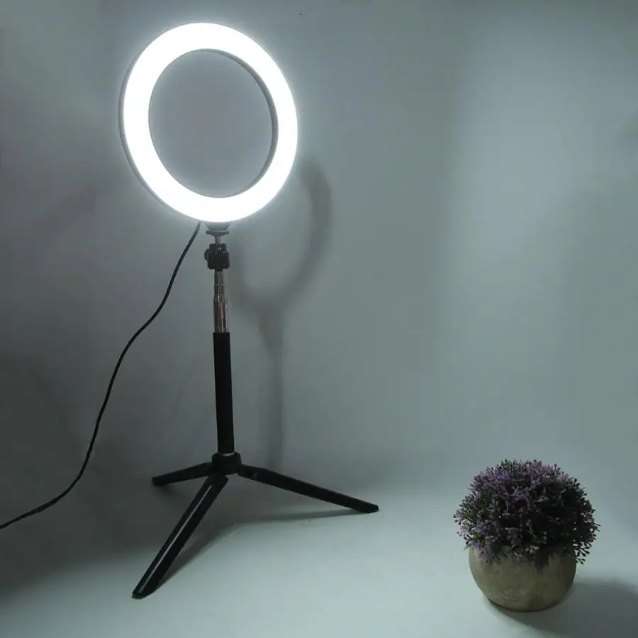 20 см светодиодный затемнения светодиодный кольцевой вспышкой Камера лампа со штативом для мобильного телефона держатель USB Порты и разъёмы