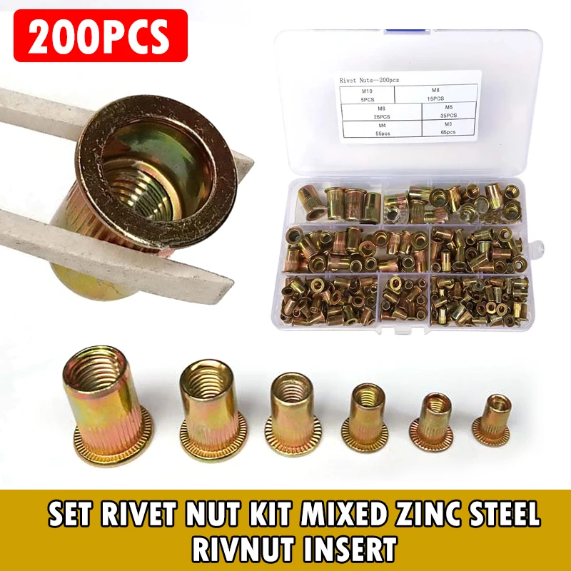 200 шт./компл. набор гаек с заклепками из смешанной углеродистой стали, оцинкованная Rivnut вставка Nutsert, резьбовые M3-M10 крепежные детали для металлообработки