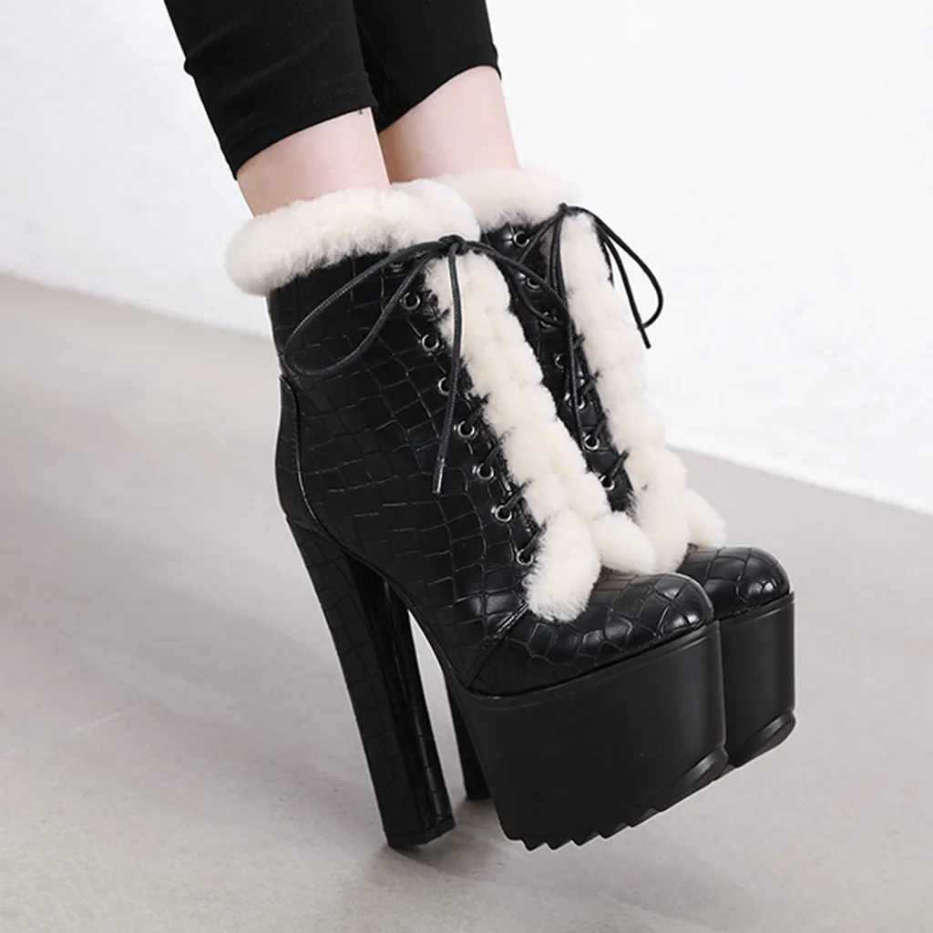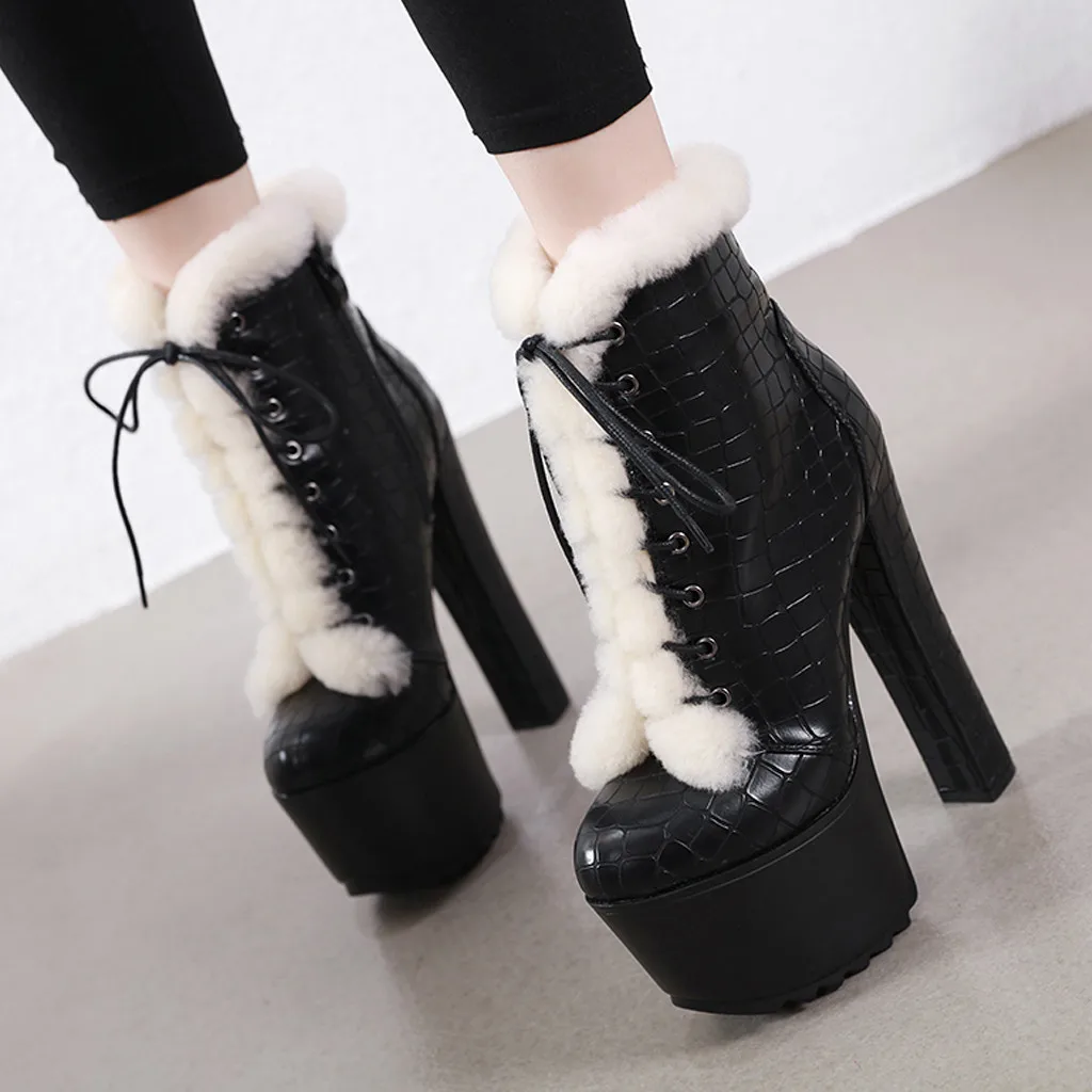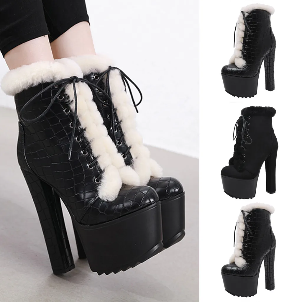 Женские полусапожки на Высоком толстом каблуке с боковой молнией и перекрестными ремешками