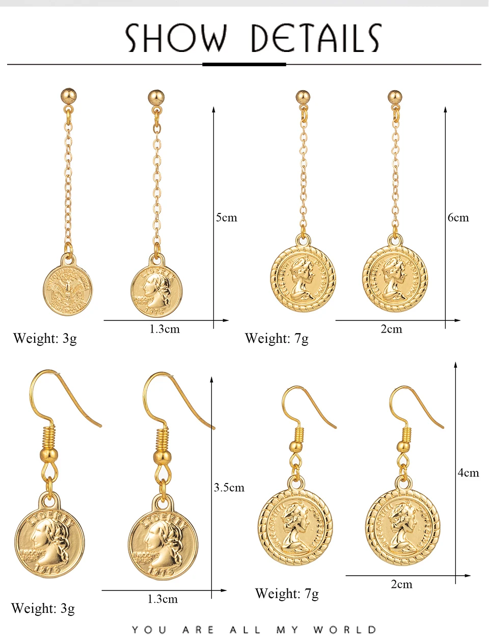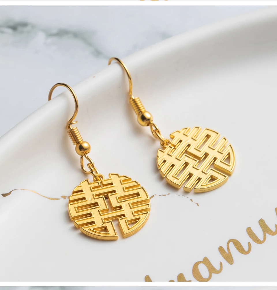 Romantic Sweet Cute Golden Copper Coins Shape Dangling Earrings For Women And Girls Wedding Engagement Accessories Ear Ornaments Material:Copper alloy Size:As the picture Weight:5g