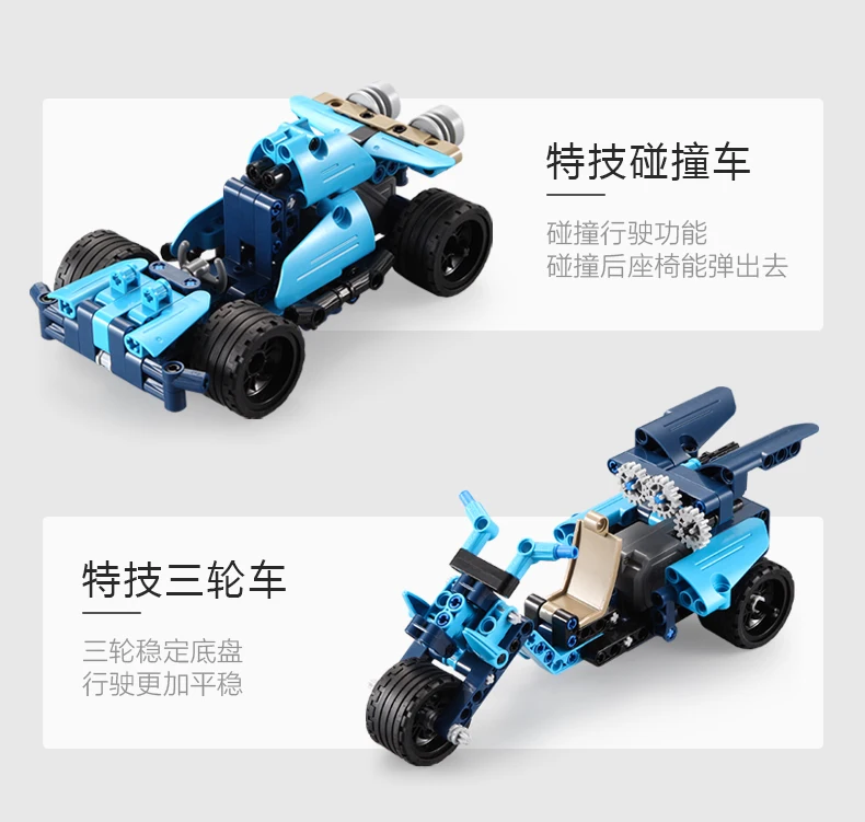 Название продукта: Phantom of Blue (6 в 1) Номер товара: C52015 Частицы строительных блоков: 509 шт. Стиль продукта: Эжектор, альпинист, автомобиль столкновения, двухколесный автомобиль, трехколесный велосипед Размер продукта: Размер выброса транспортного средства: 28X11.8X8.1CM Размер альпиниста: 18.4x9x7.5см Размер транспортного средства: 16.7x9.6x7см Размер двухколесного транспортного средства: 17,7x7,2x6,9 см Трехколесный велосипед Размер: 21.8X9.6X8.5CM Функция продукта: изысканный 6-в-одном форма, устойчивость функция, сцепление, бытовые средства защиты устройства