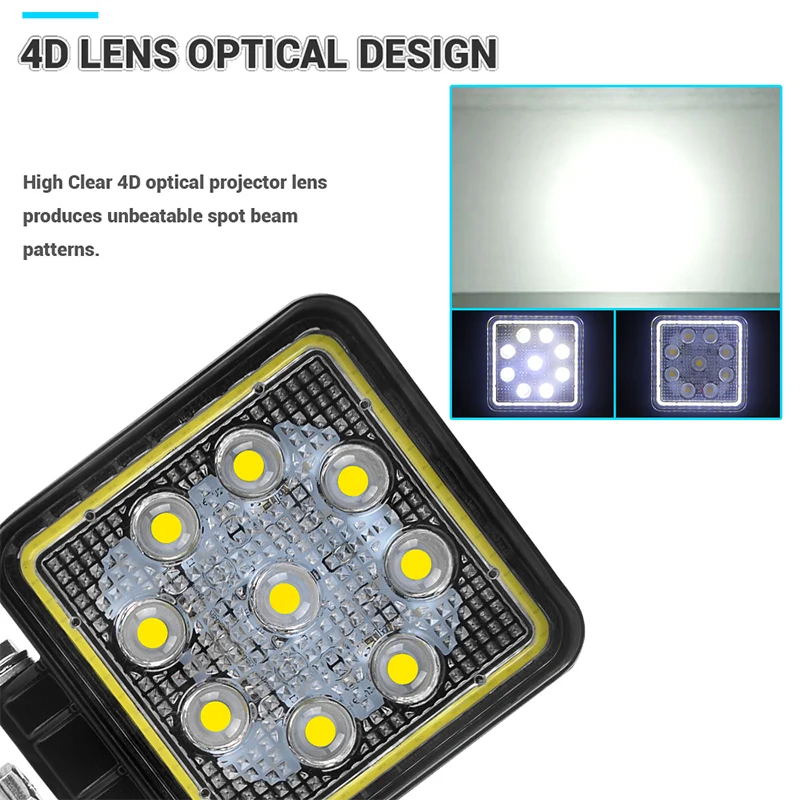 4-дюймовый автомобильный светодиодный рабочий светильник с белым ангельским глазом Halo 4D квадрат 6000K белый точечный луч дневной свет DRL внедорожный 4x4 грузовик Лодка ATV UTV 12V