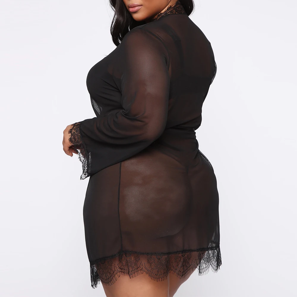 Характеристики продукта: Размера плюс сексуальный сетчатый кружевной халат с длинным рукавом