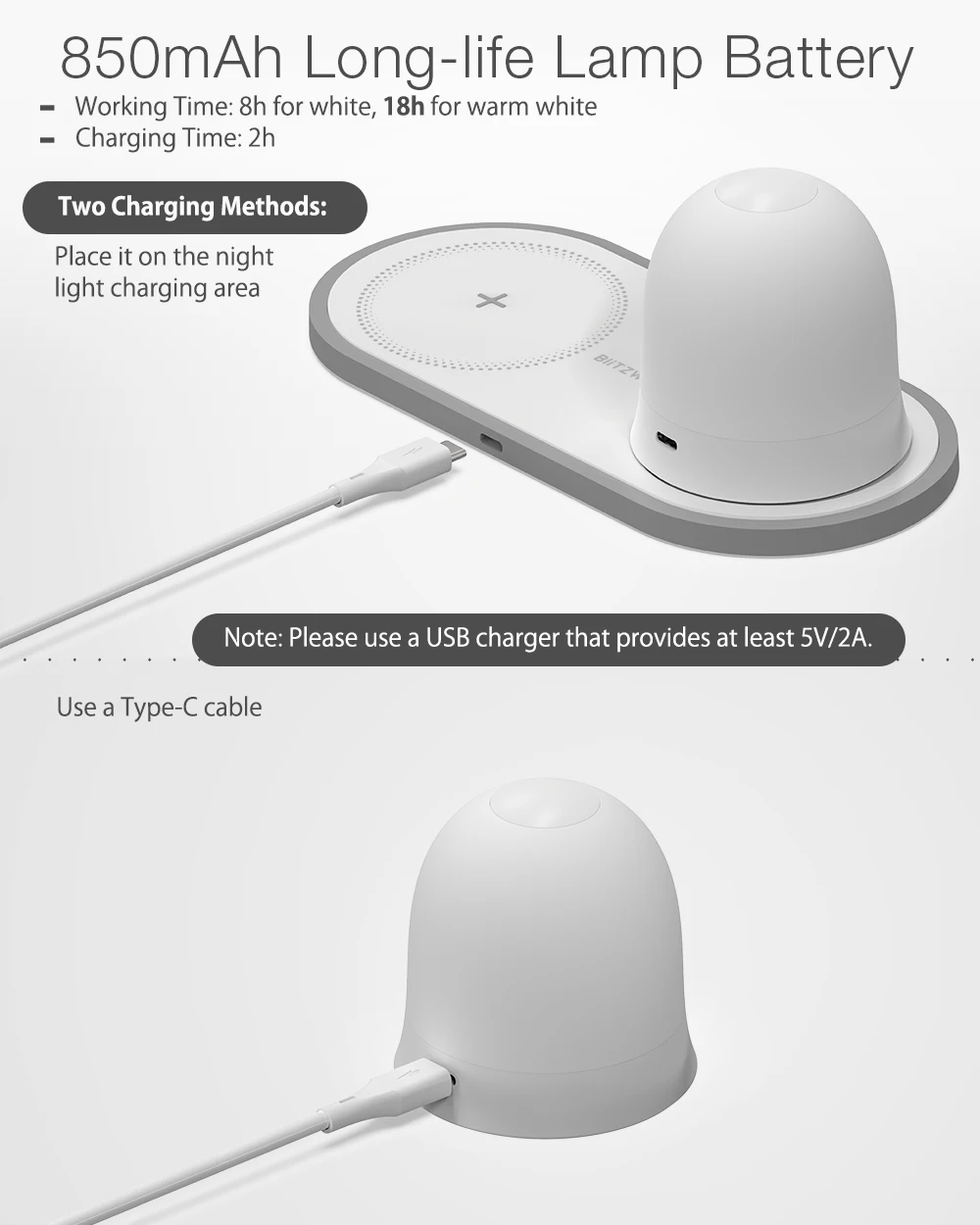 Ночник, время зарядки 2 ч
