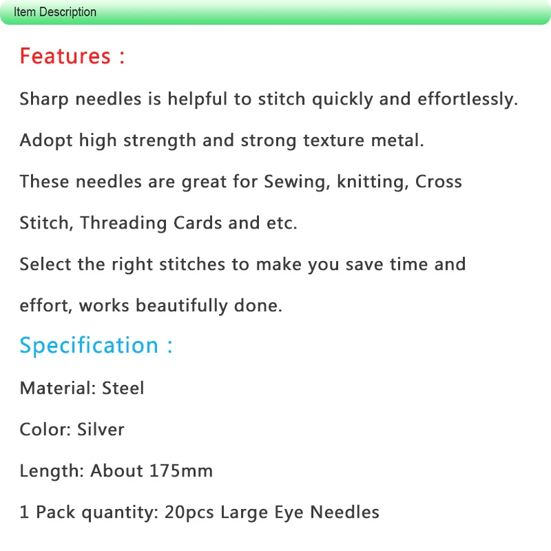 MIUSIE 20 шт 175 мм Большой Глаз ручные швейные иглы золотые глаза иглы вышивка гобелен