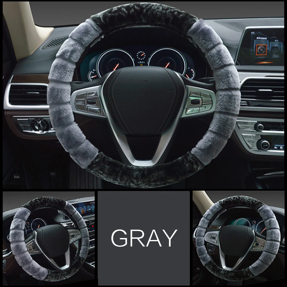 Зимняя ручка автомобиля короткая плюшевая крышка рулевого колеса дизайн. Эта привлекательная крышка рулевого колеса улучшает старый или грязный вид. Когда вы протянете руль, он сделает вас более комфортным. Выберите высококачественную плюшевую ткань, экологичное резиновое внутреннее кольцо, безопасное и нескользящее.