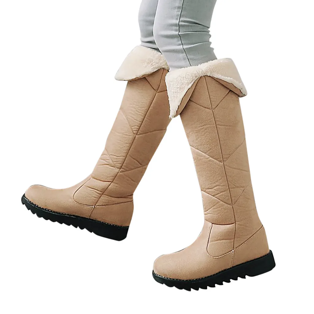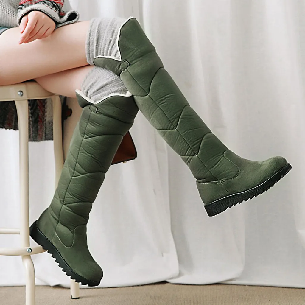 Модные однотонные сапоги без застежки с круглым носком; женские Сапоги выше колен на Плоском Каблуке