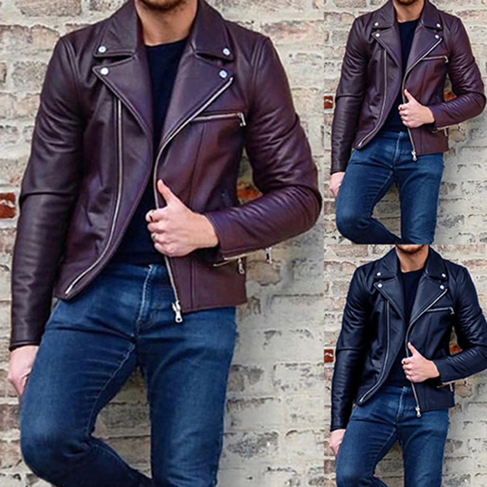 Новая модная осенне-зимняя мужская кожаная одежда с длинным рукавом и лацканами, Повседневная Свободная мужская приталенная мотоциклетная куртка, пальто на молнии