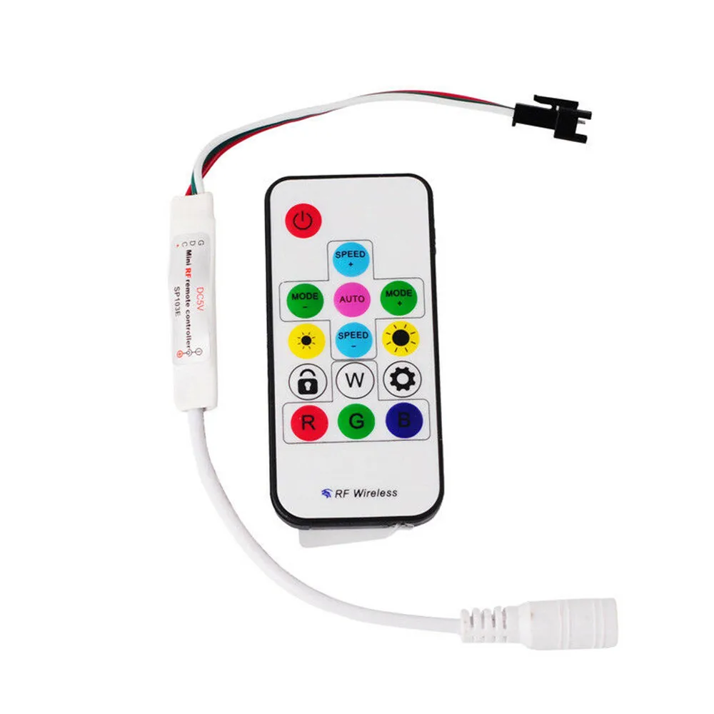 1. Входное напряжение: DC5V-24V 2. Выходной ток: 6A 3. Размер пульта: L85 * W40 * h6 мм 4. Размер приемника: L220 * W12 * h3мм 5. Посылка Размер: L130 * W90 * H8mm 6. Вес нетто: 30 г 7. Вес брутто: 36 г 8. Метод подключения: общий анод 9. Способ подключения: выход для Светодиодный светильник, вход постоянного тока для источника питания 10. Удаленный вход: аккумулятор CR2025 * 1 шт. (не входит в комплект) 11. Удаленное расстояние: около 30 м Особенности: 1. Он может поддерживать полноцветный светодиодный индикатор 5-24 в IC, такой как WS2811,WS2812. .. 2. Каждый контроллер может управлять до 2048 пикселей 3. Радиочастотный пульт дистанционного управления, большое расстояние 4. С 300 видами узоров, которые яркие и красивые Регулировка скорости 5,10 уровней, регулировка яркости 6. Мини-размер, проводное соединение простое и очень простое в использовании 7. С пользовательской настройкой функции экономии 8. Предотвращение обратного подключения источника питания 9. Широко используется для 5-24 в светодиодный Пиксельной полосы, может быть настроен для поддержки Почти каждый провод или два провода LED-DRIVER-IC Доставка: 1x 14Key контроллер