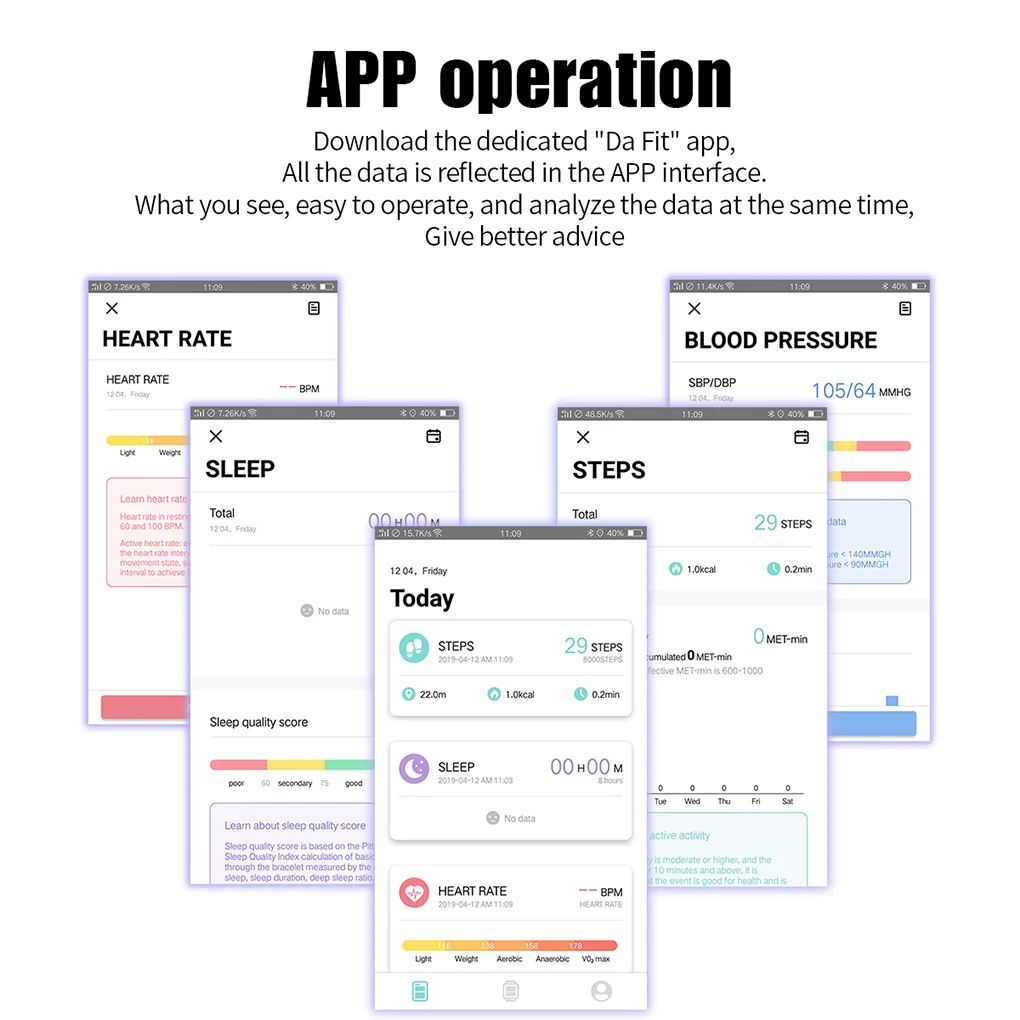 Отслеживает частоту сердечных сокращений в реальном времени автоматически и непрерывно и автоматически отслеживает продолжительность сна.
