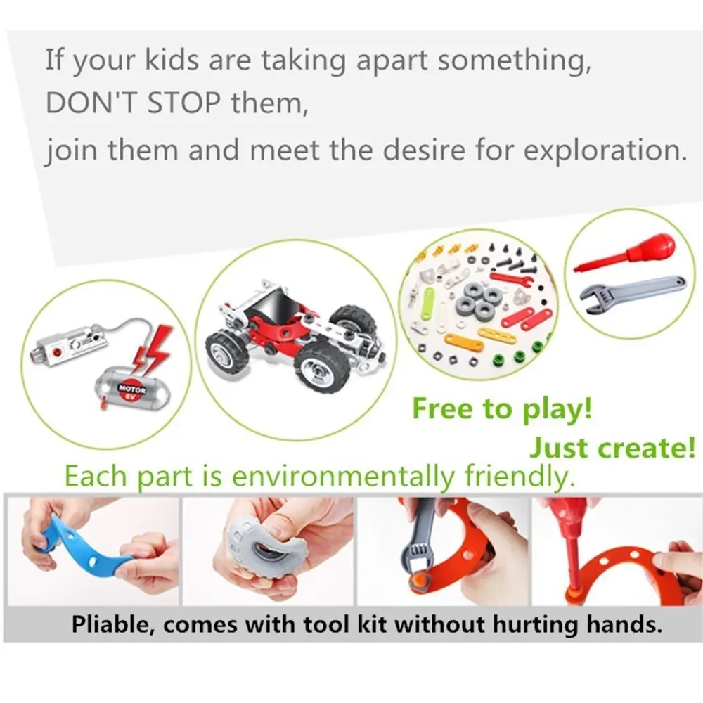 Посылка Размер: 22x16x11 см/8,7x6,3x4,3 дюйм (ов) · Количество деталей: 100 + · Поставляется с двигателем 6 в, который сделает его двигаться, требуется 4 батарейки AA (не входят в комплект)