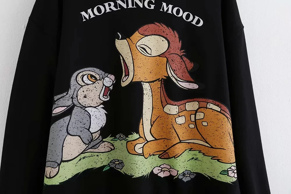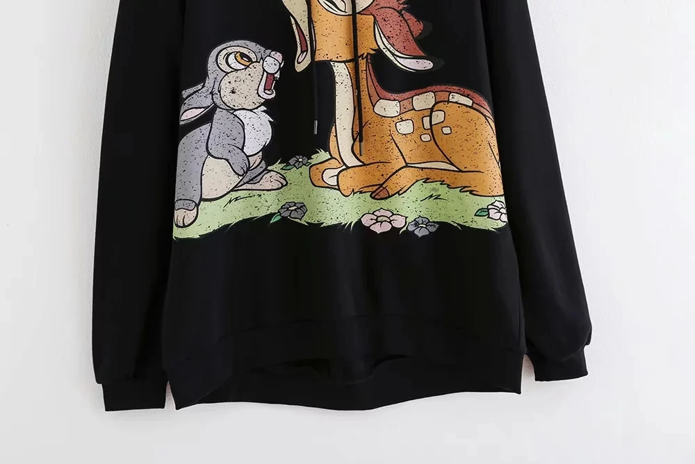 MORNING MOOD Олень Кролик принт женский милый пуловер Женская зимняя одежда негабаритная толстовка Свободный черный zora vicky Толстовка