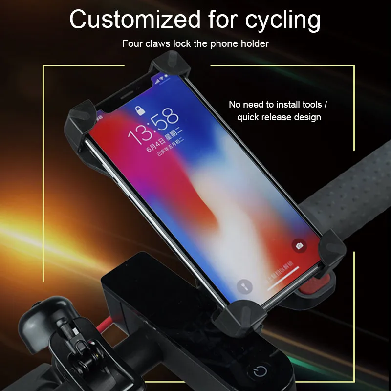 Он имеет накладку, зафиксированную на доске держателя, может предотвратить вибрацию и стабилизировать телефон при езде на электронном скутере.