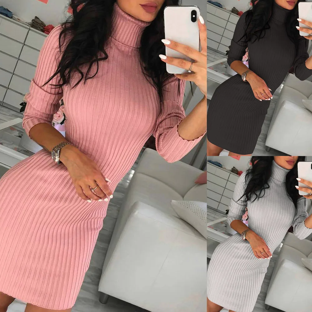 Женский Повседневный джемпер с длинным рукавом, платье-свитер с высоким воротником