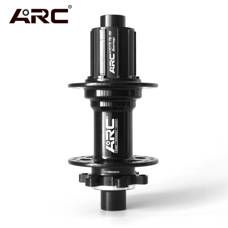 ARC MT005 mountain bike hub set, the body material of the hub is AL6061-T6 aluminum, the material of Freehub and axle is high and higher strength AL7075-T6 aluminum. MT005 The front hub has 2 NBK bearings OLD is 100mm, the rear hub has 4 NBK bearings OLD is 135mm or 142mm, The freebub has 4 pawl , 48 sounds, MT005 is compatible with Shimano 8-11 speed groupset, flange is 32 holes Suitable for 14G J Bend Bicycle Spokes.