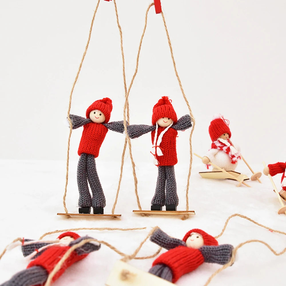Snowman Wooden Knitted Christmas Figurine Ornaments Wool Skis Swing Couple Dolls Children's Toys Gift Window Photography Props