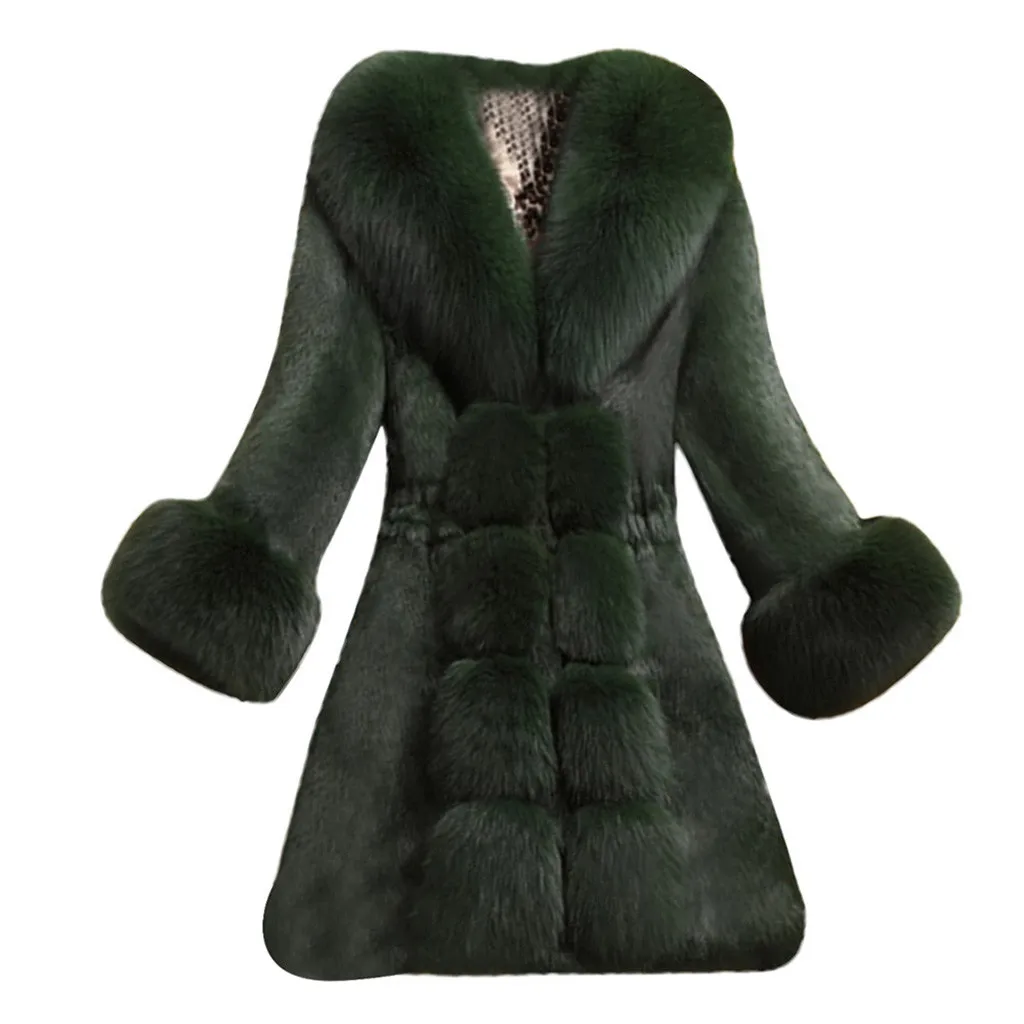 Женское пальто из искусственного меха, элегантная Толстая теплая Модная верхняя одежда, длинная куртка из искусственного меха
