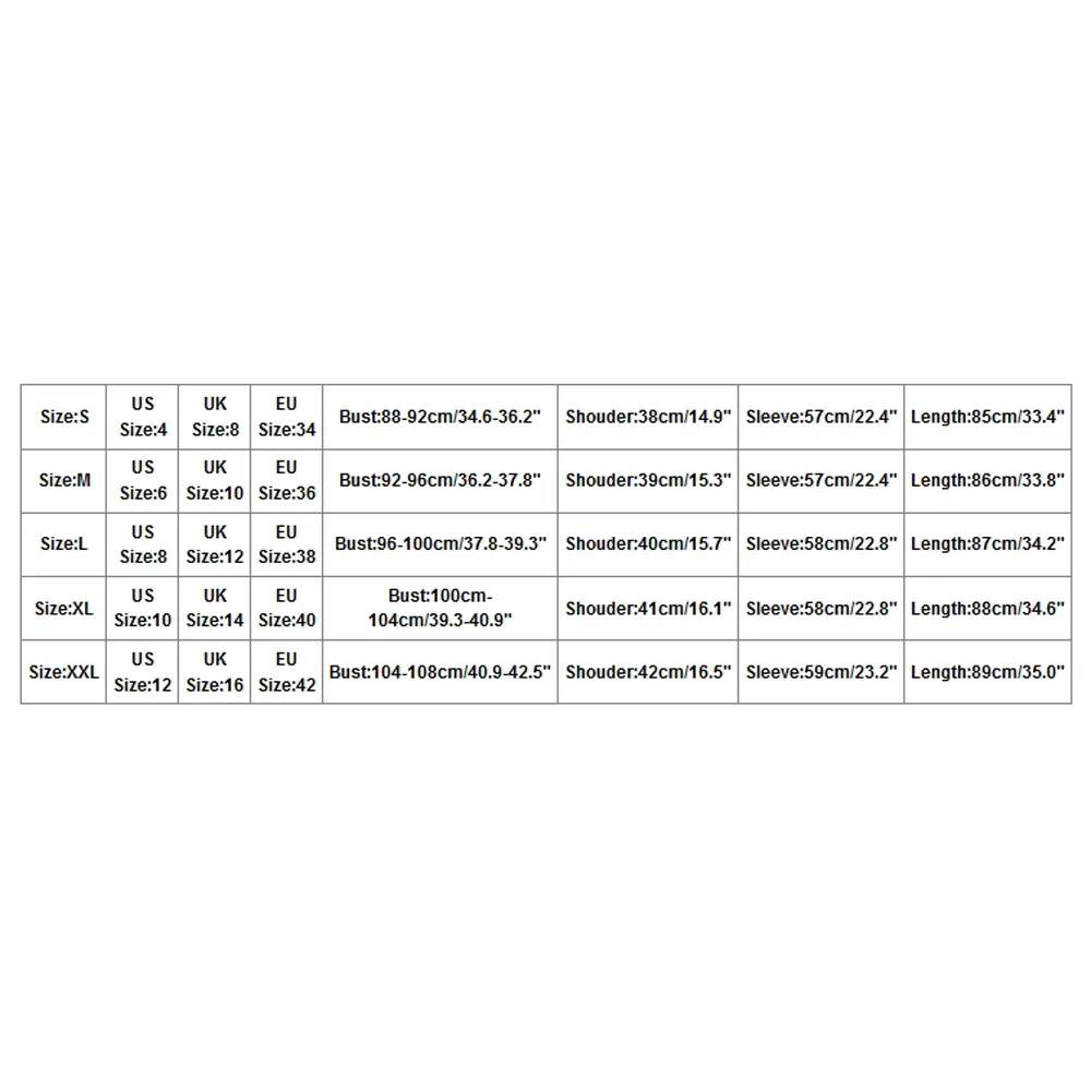 Размеры Нам Размеры UK Размеры ЕС Размеры Обхват груди Блузки, ширина плеч Рукава Длина S 4 8 34 88-92 см/34,6-36,2" 38 см/14,9" 57 см/22,4" 85 см/33,4" М 6 10 36 92-96 см/36,2-37,8" 39 см/15,3" 57 см/22,4" 86 см/33,8" L 8 12 38 96-100 см/37,8-39,3" 40 см/15,7" 58 см/22,8" 87 см/34,2" XL 10 14 40 100 см-104 см/39,3-40,9" 41 см/16,1" 58 см/22,8" 88 см/34,6" XXL 12 16 42 104-108 см/40,9-42,5" 42 см/16,5" 59 см/23,2" 89 см/35,0"