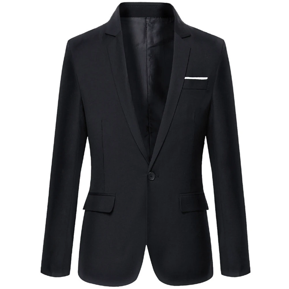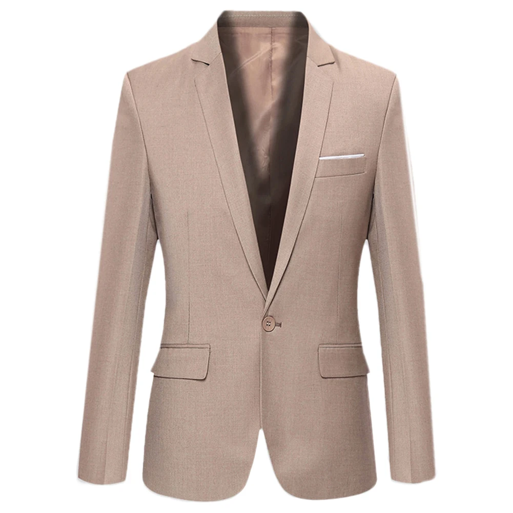 Мужские деловые блейзеры, весна-осень, формальное Мужское пальто, мужской модный однотонный блейзер с длинным рукавом, приталенный силуэт