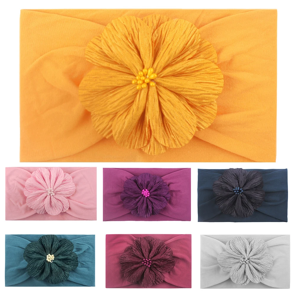 Милый однотонный цветок для новорожденных девочек эластичный мягкий широкий ободок для волос головной убор