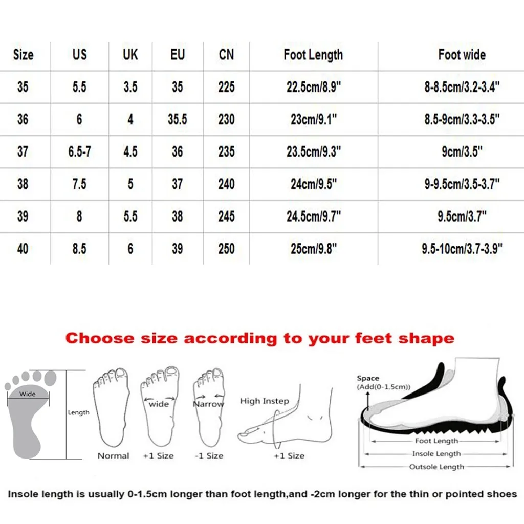 Полезные советы:Разные Стили обуви, пожалуйста, выберите размер в соответствии с типом вашей стопы