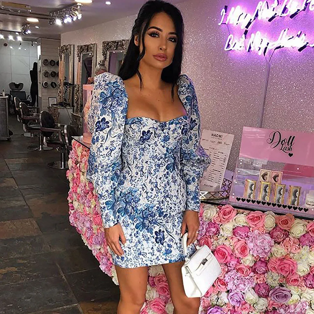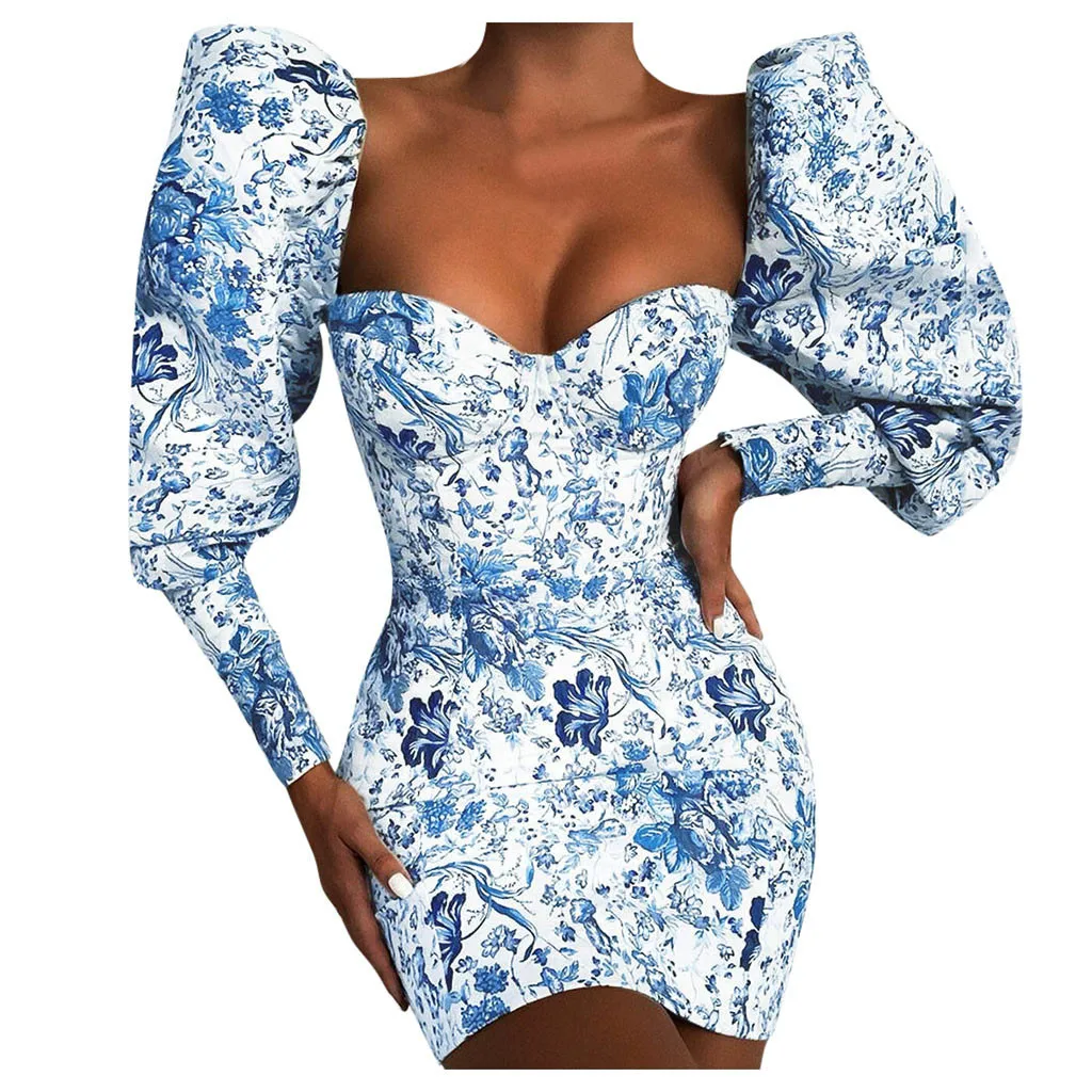 Женское сексуальное платье с длинным рукавом с v-образным вырезом и оборками