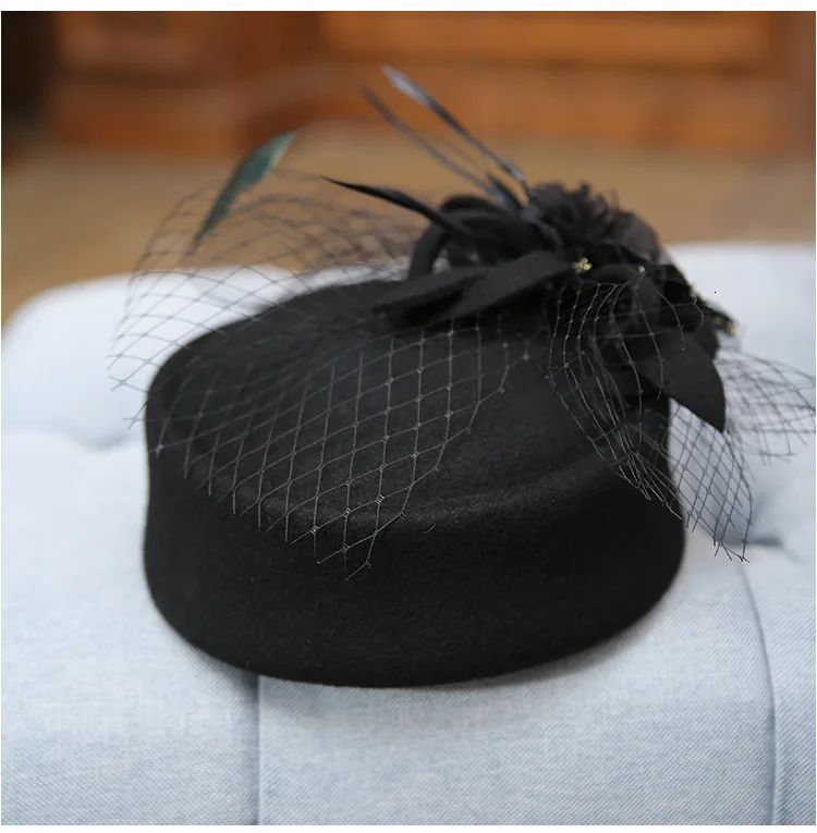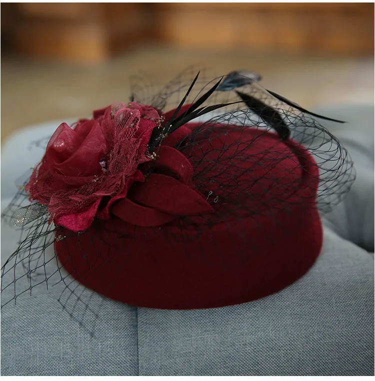 Шерстяная ретро-шляпа из зажим для волос с жемчугом марли с перьями и цветами для укладки волос