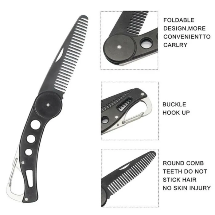 Портативный мужской карманный гребень для бороды складной, из нержавеющей стали щеточка для бритья путешествия сложенная укладка бороды из нержавеющей стали расческа