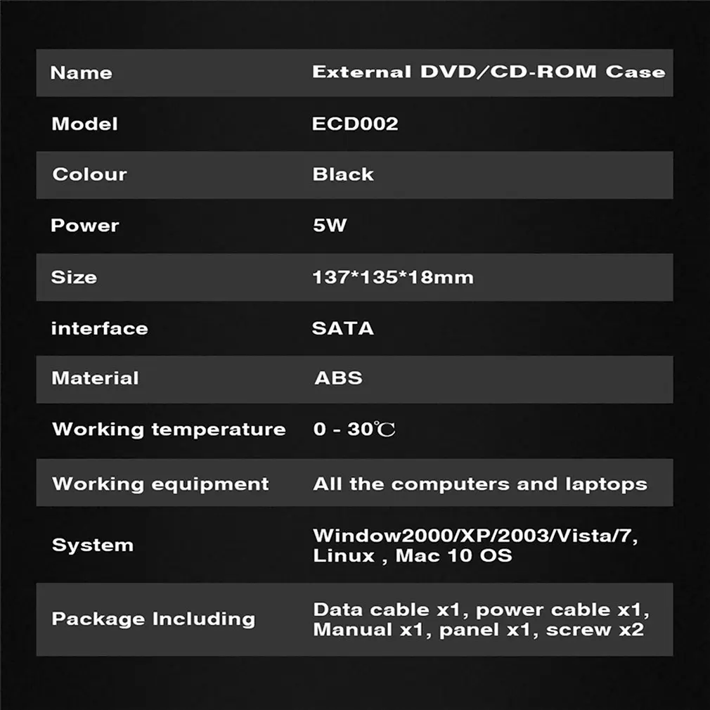 2. Легкий дизайн: может быть установлен до 12,7 мм DVD ± RW / Combo/компакт-диск.