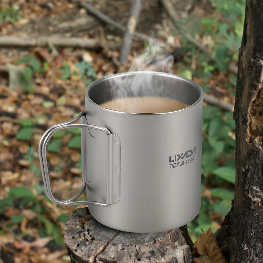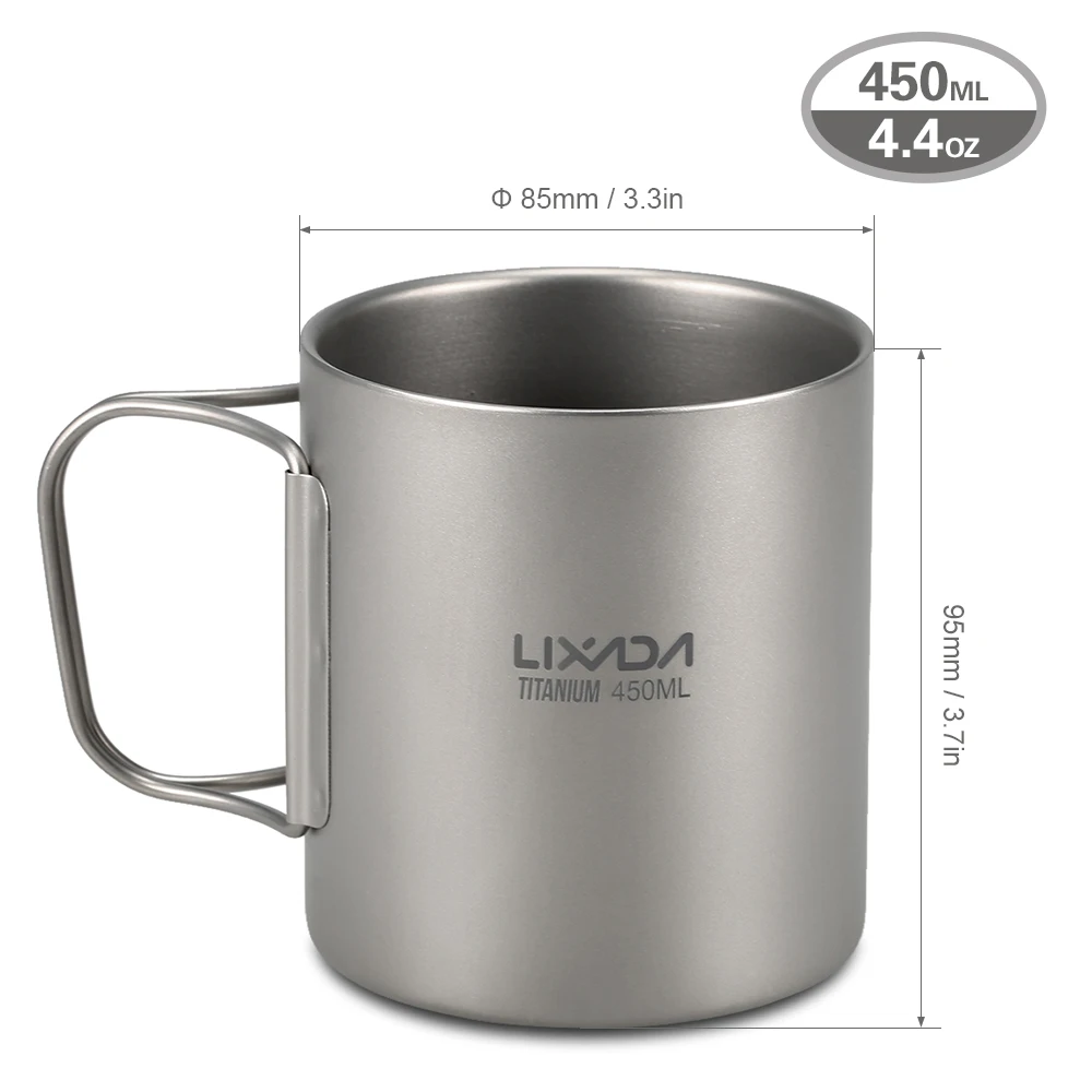 Титановая чайная чашка с двойными стенками, отлично подходит для дома, офиса, кемпинга, походов, пеших прогулок, пикника и других мероприятий на свежем воздухе.