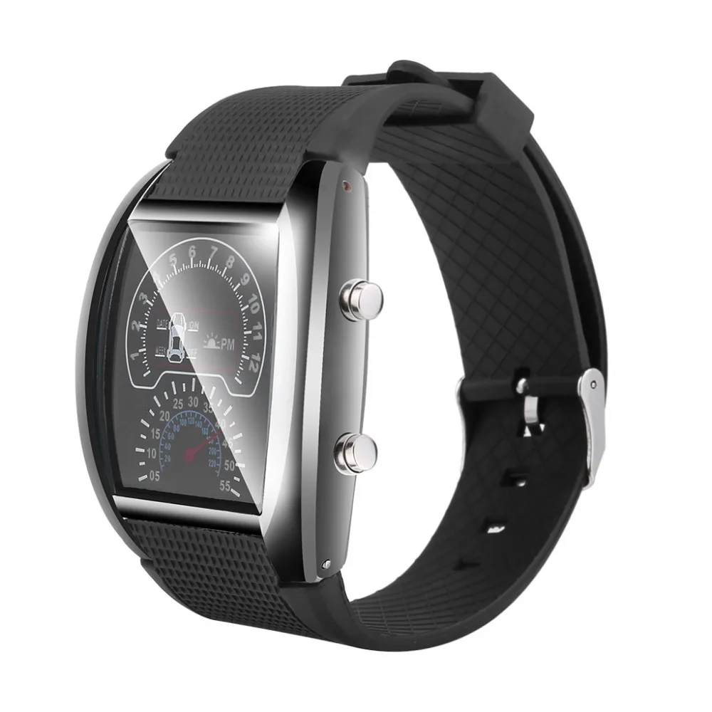 Цифровые светодиодный спортивные часы имитируют вид автомобильного спидометра