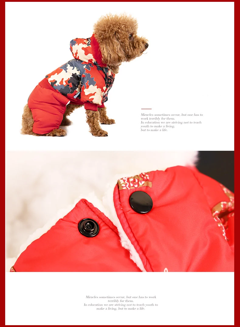 Красная рождественская одежда йоркширского терьера ветрозащитный холодный зимний питомец Пудель комбинезон для собаки Прямая поставка четыре ножки пальто маленькое животное