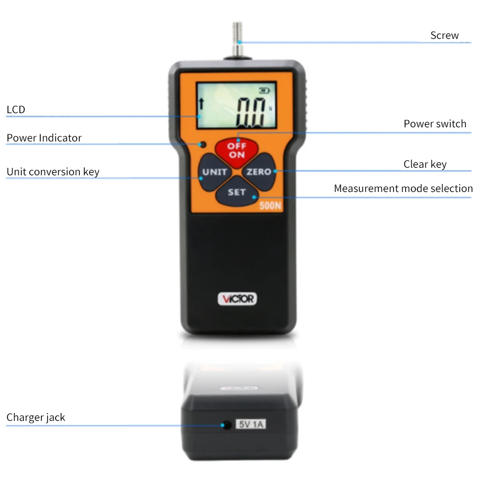 Цифровой измеритель тяги Pull давление Тест шесть режимов гравитационное Ускорение Пик VC10N/50N/100N/200N/300N/500N