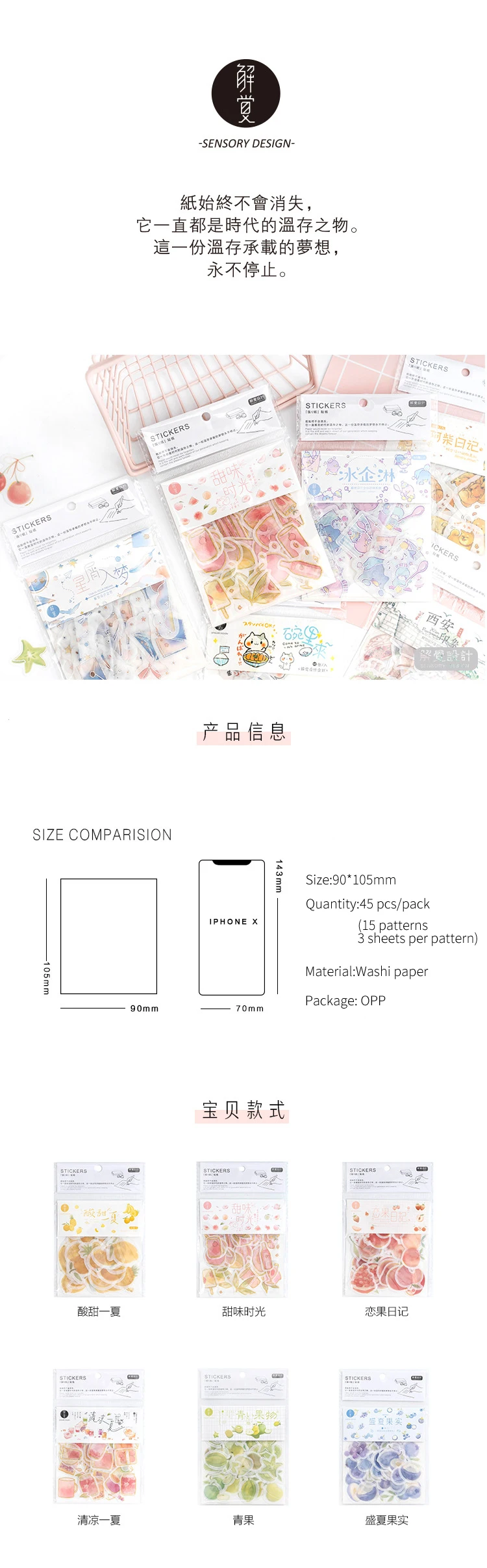 Материал: Бумага васи Цвет: как показано на фотографиях. Упаковка: 45 шт./упак. (15 узоров * 3)