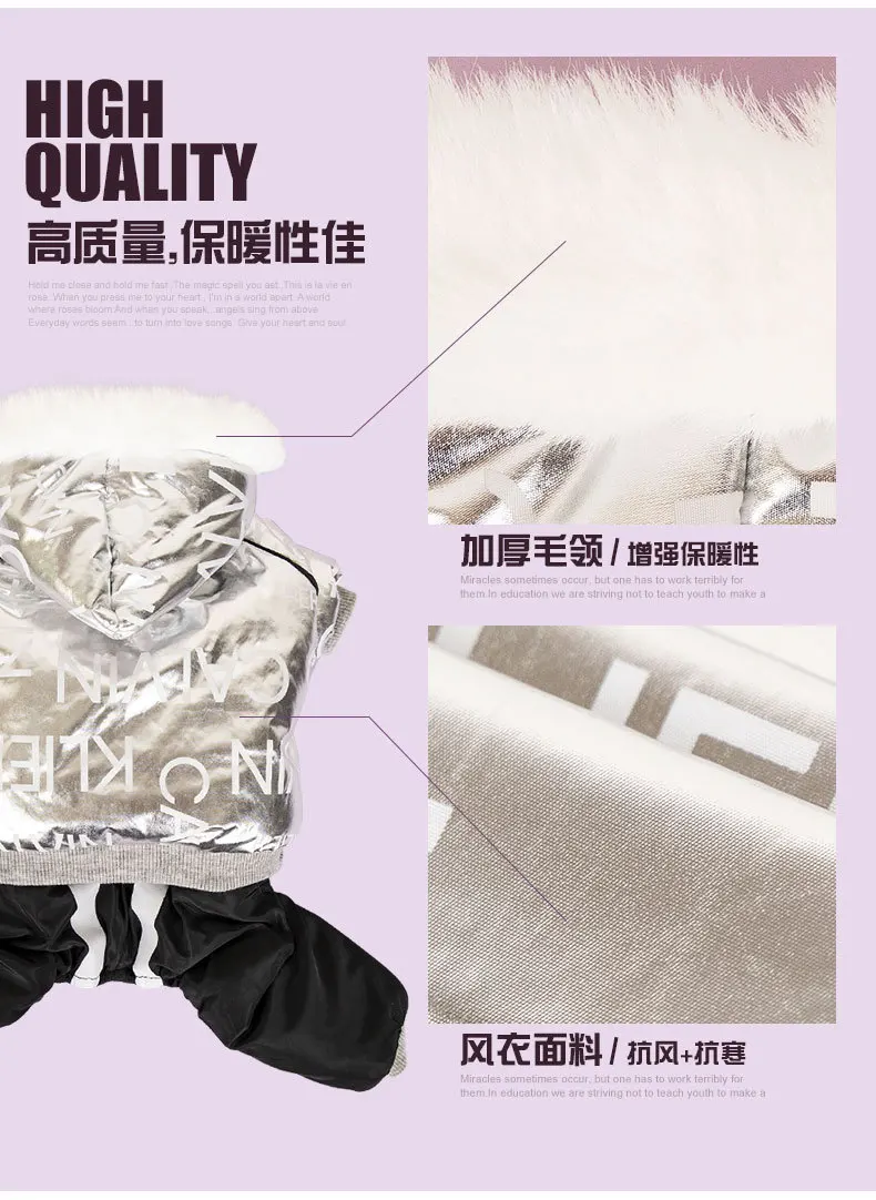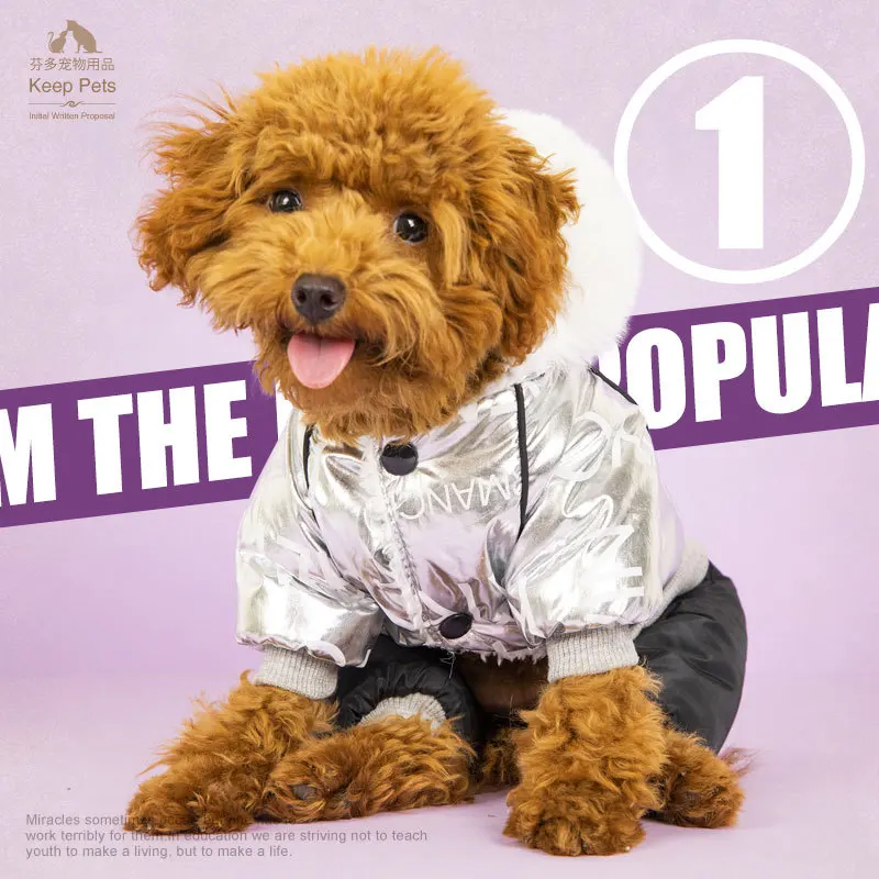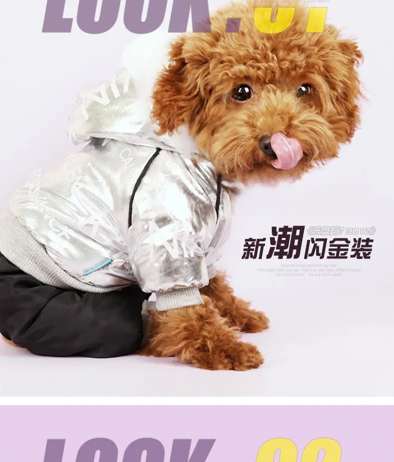 Серебряный ветрозащитный зимний комбинезон для собаки с принтом, хлопковая стеганая теплая толстовка с капюшоном для маленьких щенков, одежда для йоркширских терьеров и чихуа-Хуа