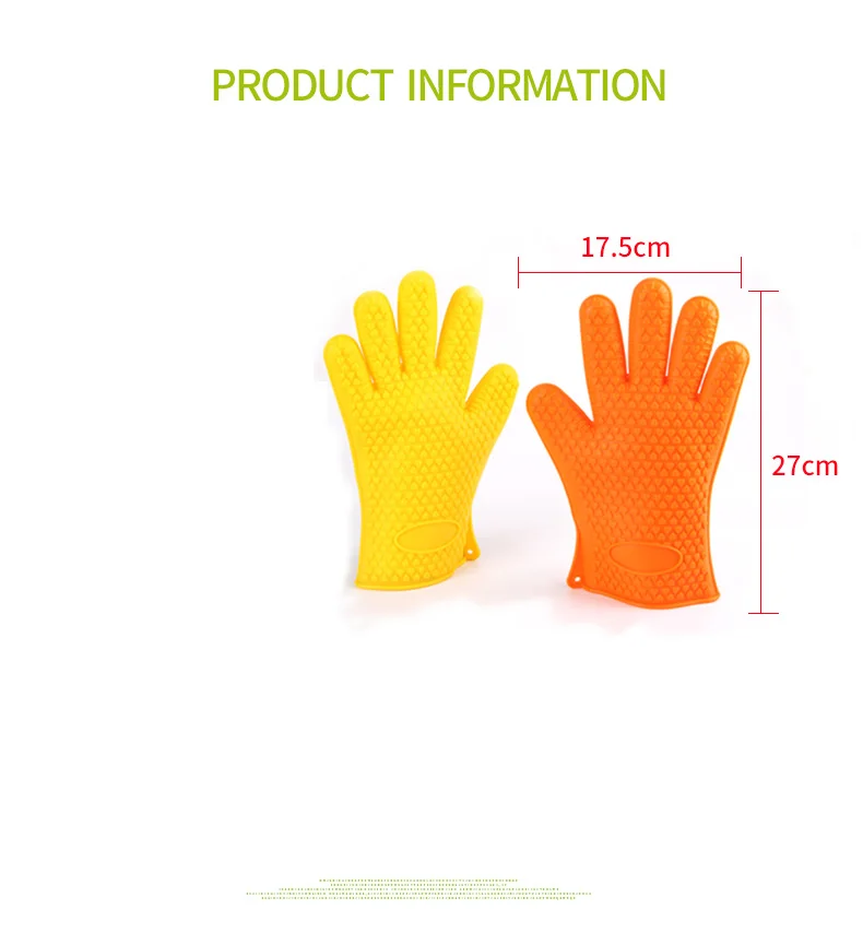 Информация о продукте Особенности: 1. Термостойкость 230 градусов (-20 ~ 280 градусов) 2. Толстый силикон, Высокая жаростойкость и холодостойкость 3. Пятипальцевая конструкция, гибкое использование 4. Противоскользящий дизайн в форме сердца 5. Хорошая гибкость, не легко деформируется Выбор цвета: желтый, оранжевый, синий, пудра Упаковка: 2 шт./пакет Применимое место: Печь, микроволновая печь, суп, горячий горшок, горячие блюда, замороженные продукты