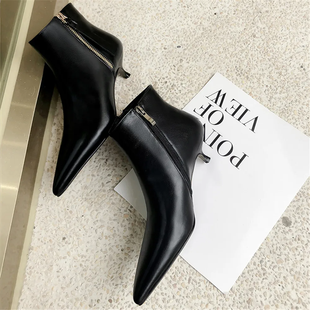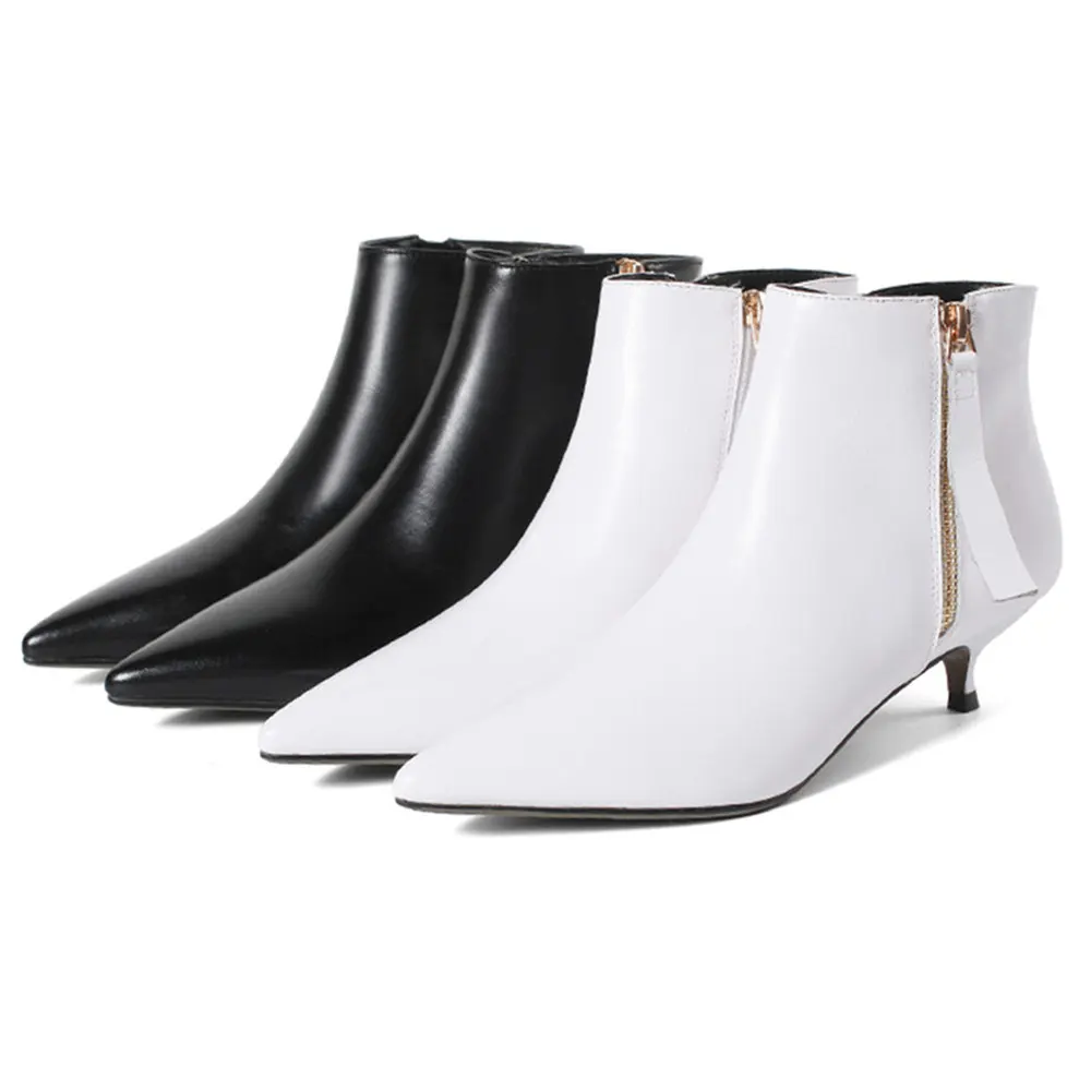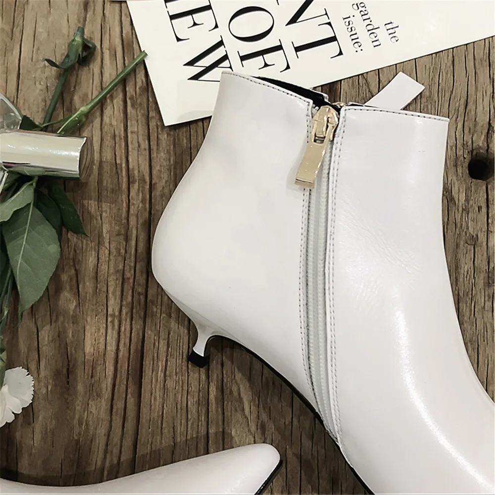 Новинка; женские ботильоны из коровьей кожи на низком каблуке; сезон весна-осень; цвет черный, белый; женские офисные модельные туфли с острым носком; Aiyoway
