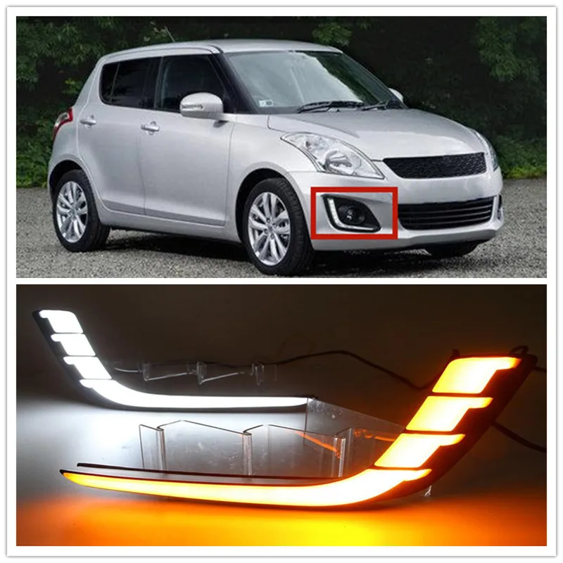 Car Flashing LED DRL Daytime Running Lights with Yellow Turning Signal fog lamp coverFor Suzuki Swift 2013 2014 2015 2016
