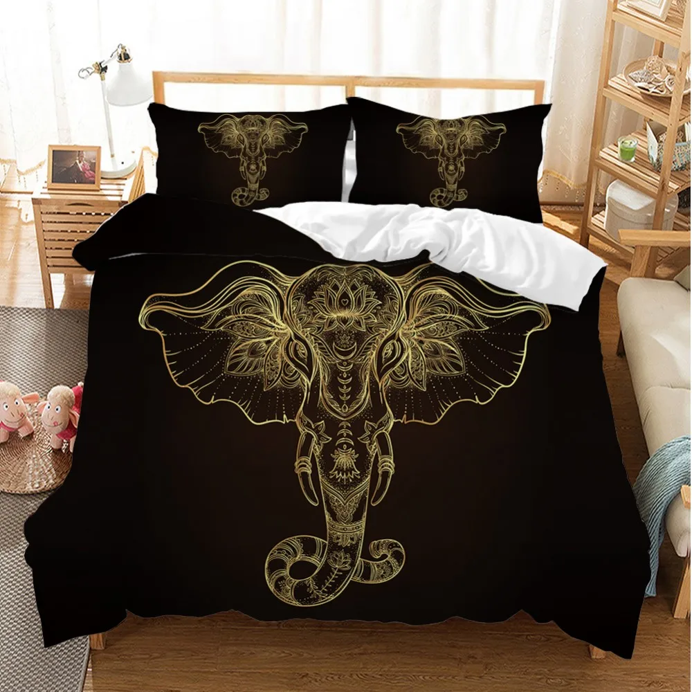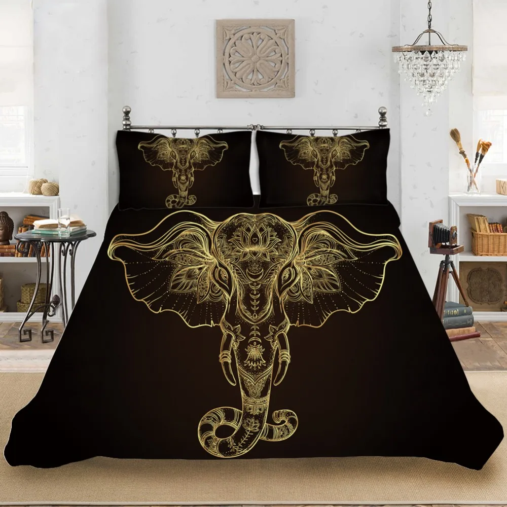 Золотой Слоник Лотос пододеяльник черный роскошный комплект постельного белья наволочка для пар украшение комнаты двойное постельное белье королевского размера
