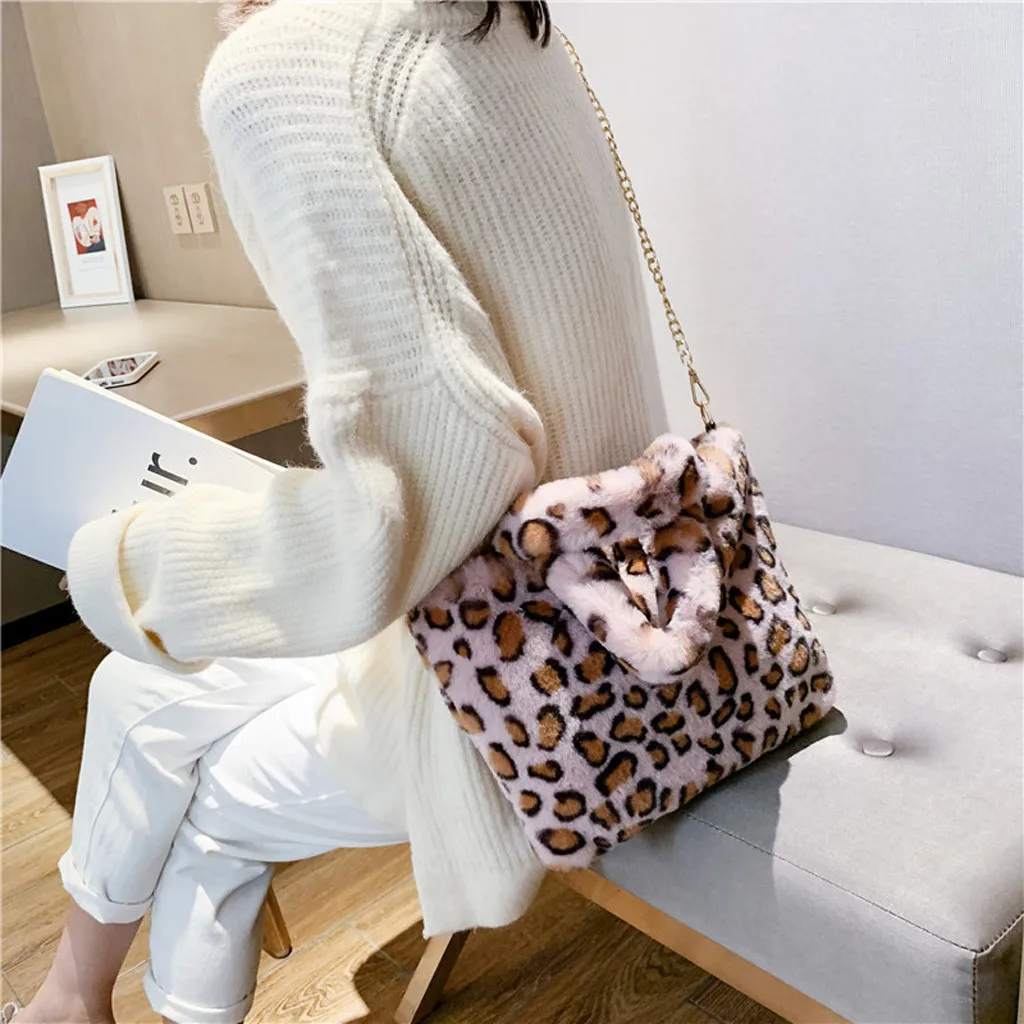 Модная женская плюшевая сумка с леопардовым узором; сезон осень-зима