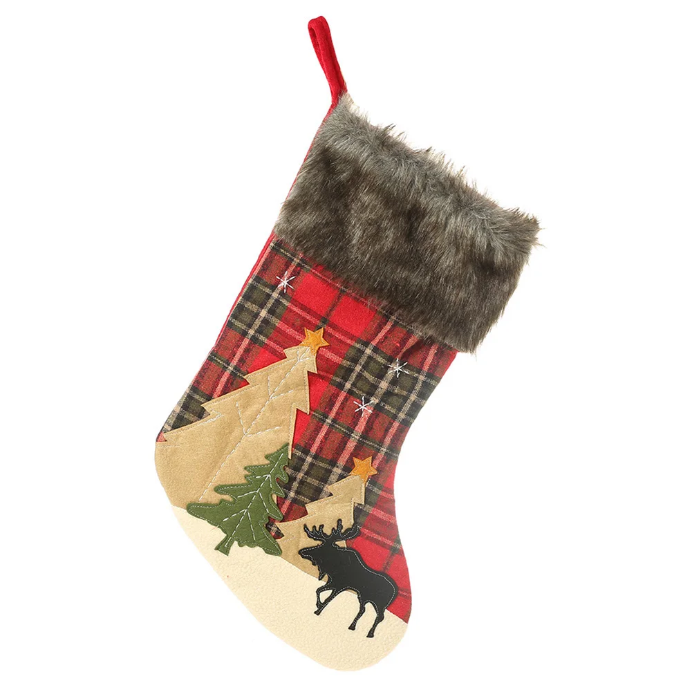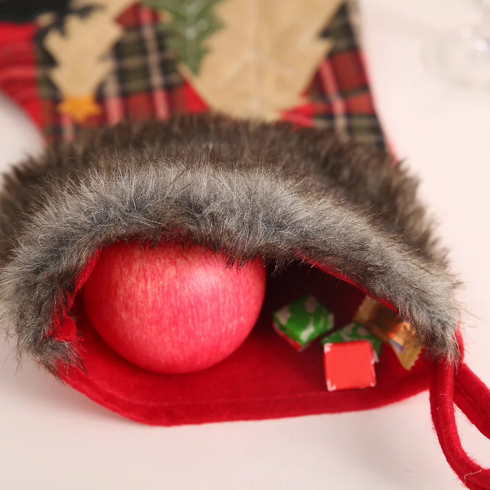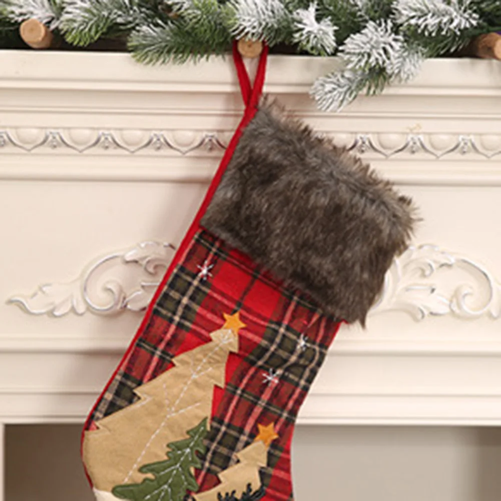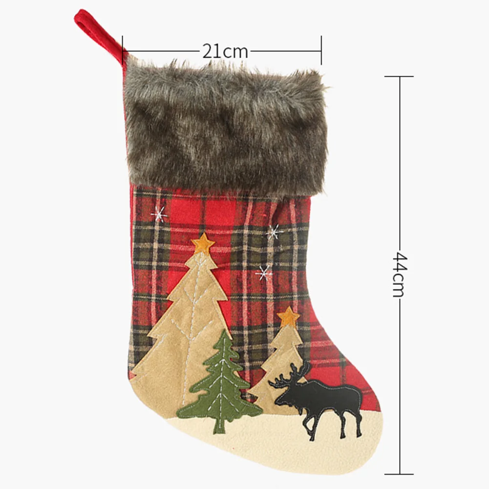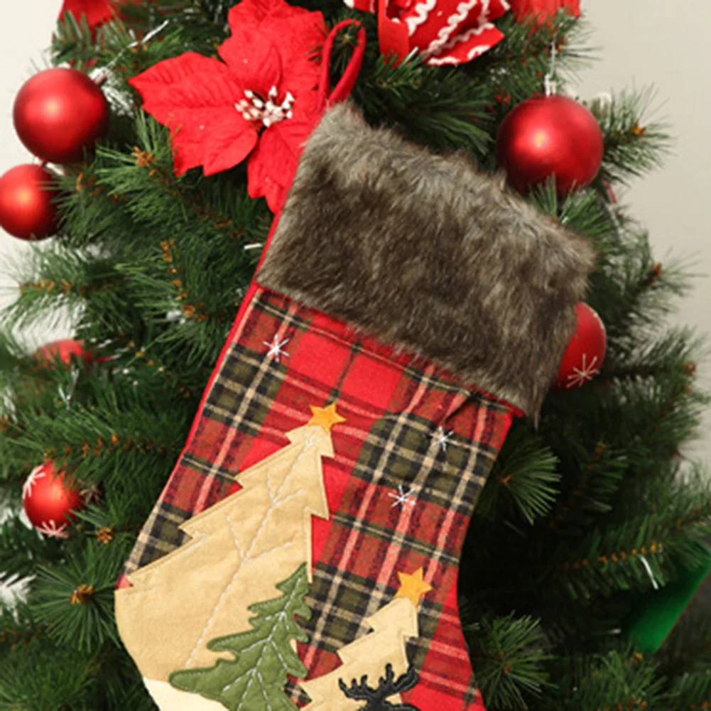 Рождественская клетчатая елка лося печать ноки чулки конфеты подарочная сумка Висячие Рождественские Декор