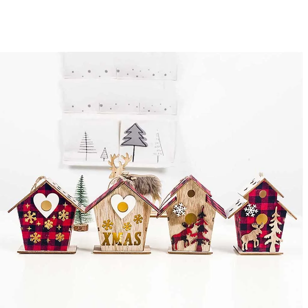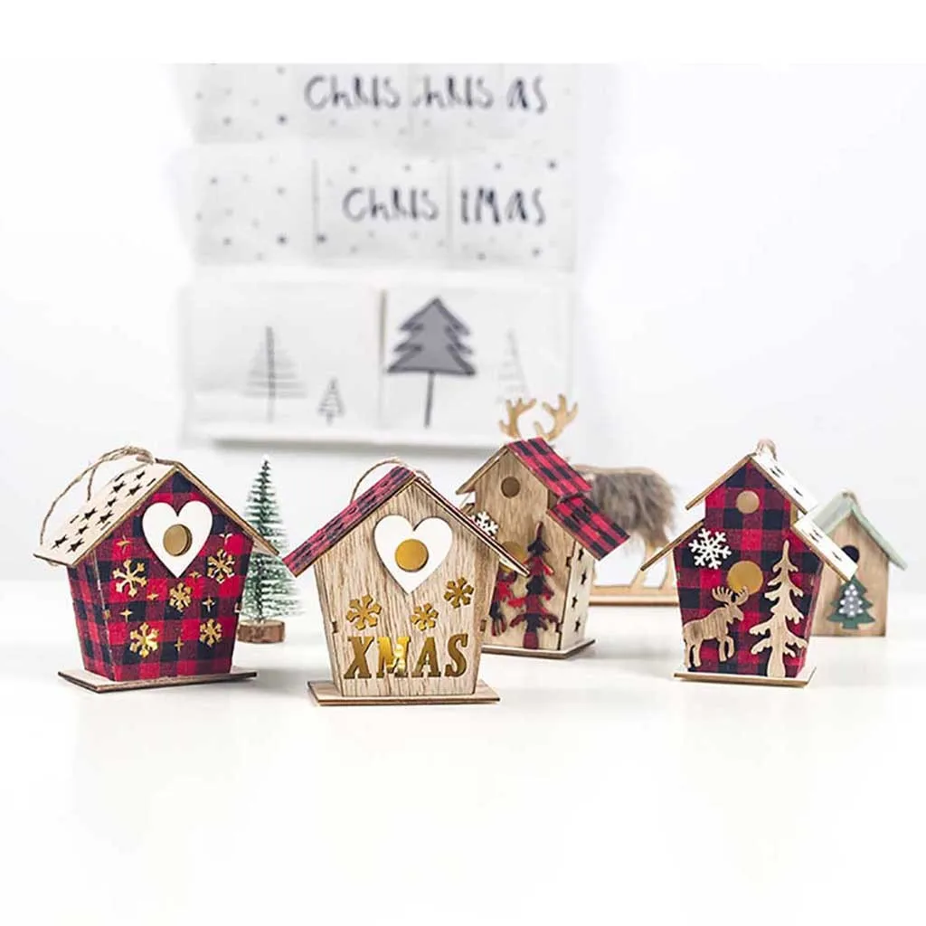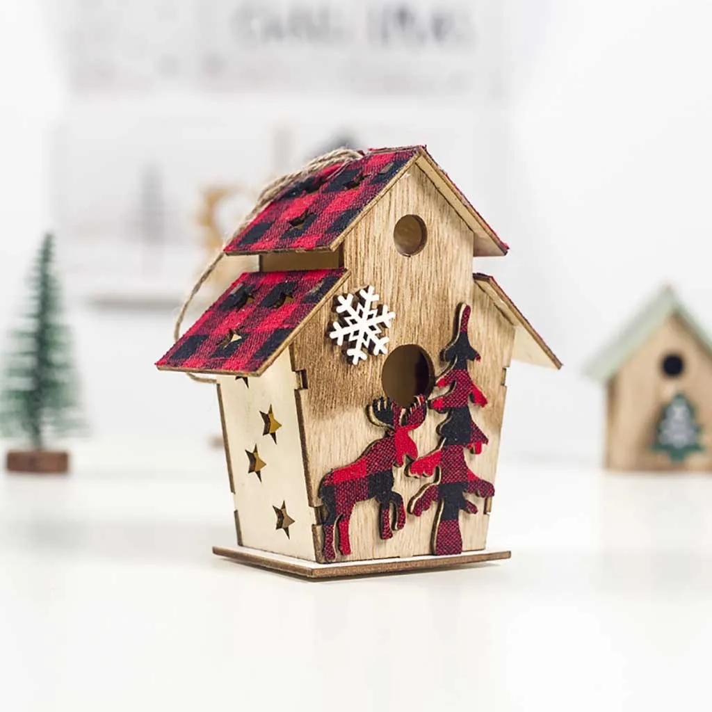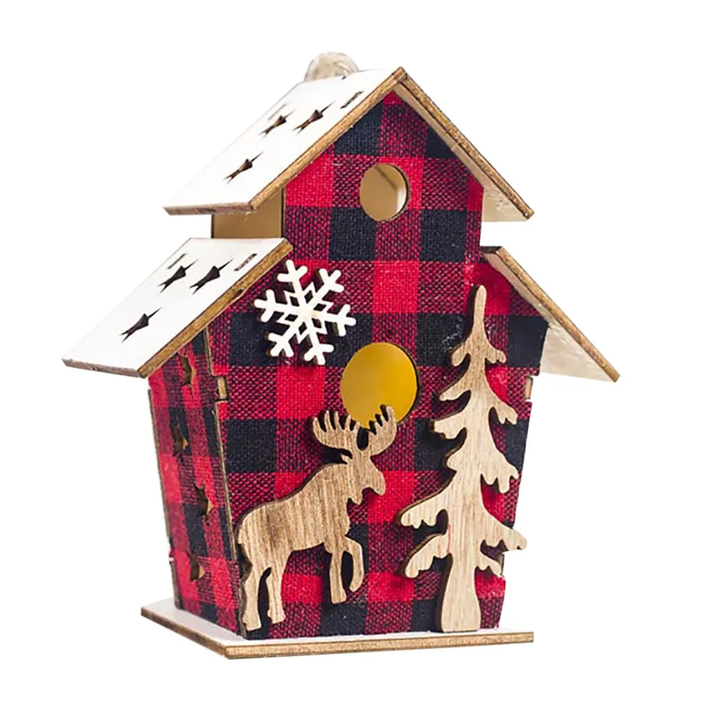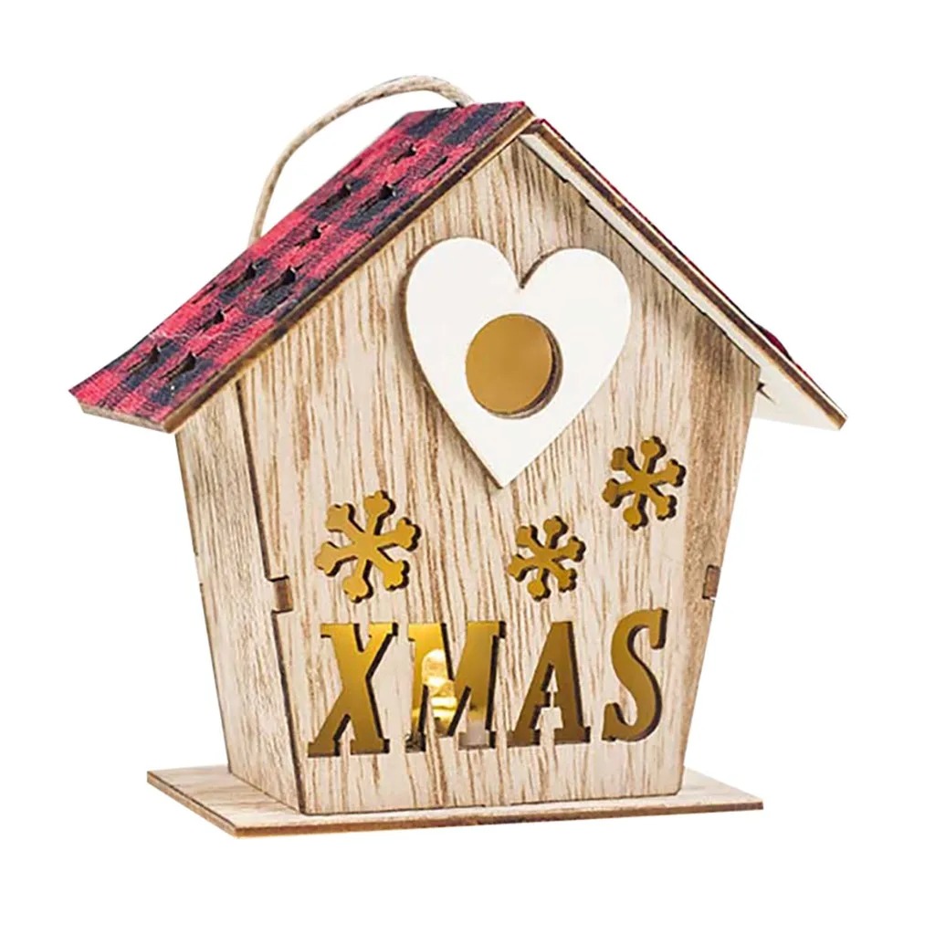 Светодиодный светильник деревянный дом милые Рождественские елки висячие украшения праздничное украшение
