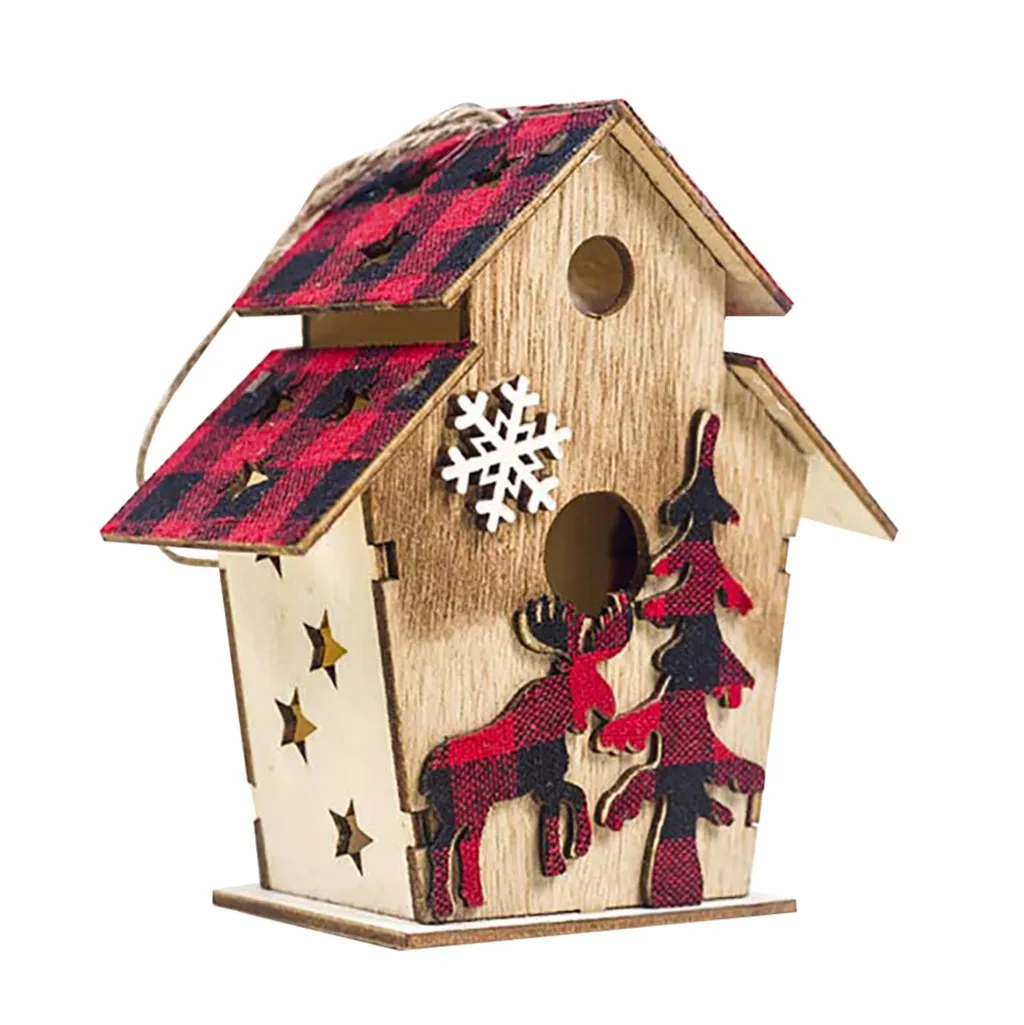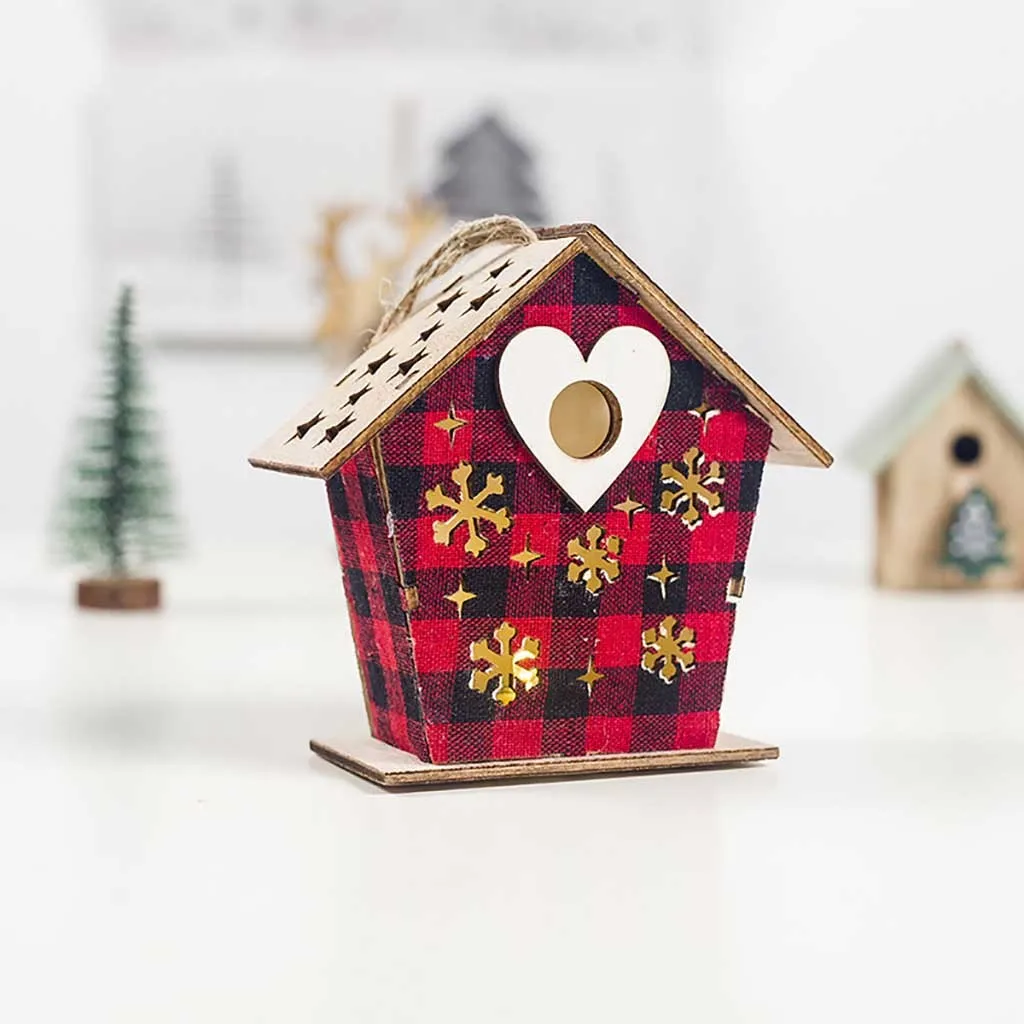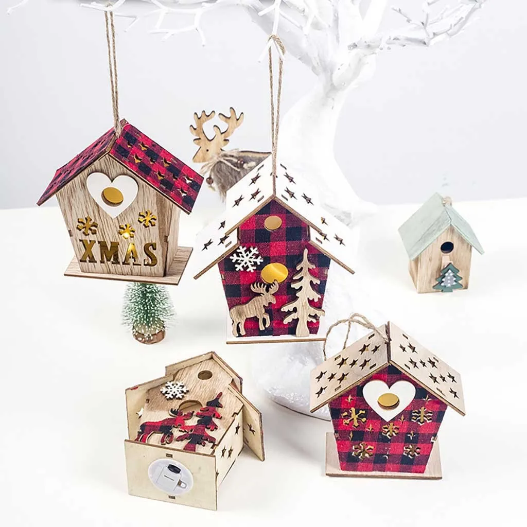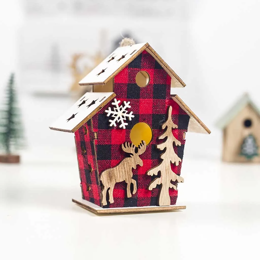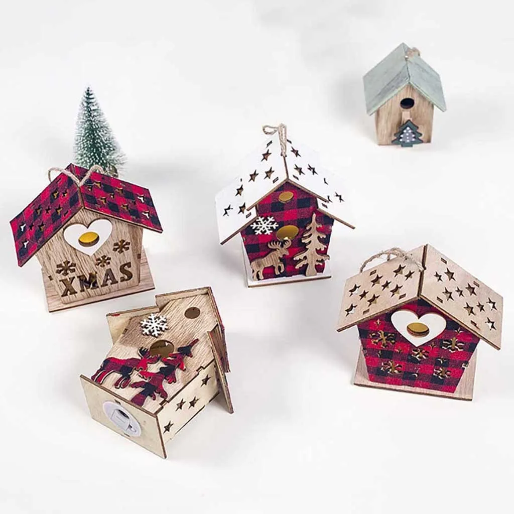 Светодиодный светильник деревянный дом милые Рождественские елки висячие украшения праздничное украшение