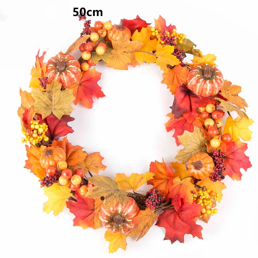 50 см Рождественский венок, дверь, настенное украшение, ягода, кленовый лист, осенняя дверь, подвесная гирлянда, праздничные украшения для дома, День благодарения Особенности: