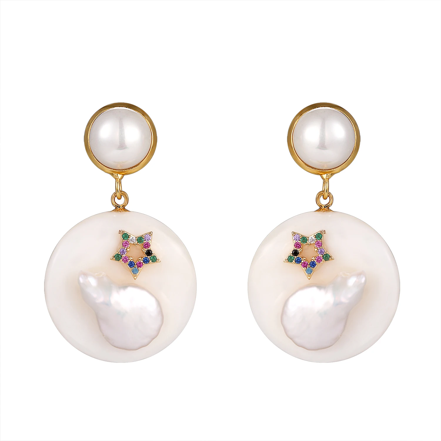 Жемчужные серьги с круглым белым циферблатом и свисающие серьги для женщин, серьги уникальные ювелирные изделия ручной работы, а также в новом стиле
