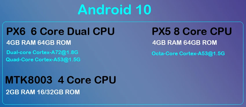 Google Android 10 Операционная система, система Android и система автомобиля интегрируют гармонию Поддержка Google Play Store Обои «сделай сам» из картин галереи Онлайн-развлечения, поддержка онлайн-видео, ТВ, фильмов, музыки, радио, Youtube... Выберите более 80 видов открытых устройств Выберите более 80 языков на выбор ЦП и память Процессор: Rockchip PX6 64 бита Восьмиядерный Cortex-A53 1,5 ГБ Четырехъядерный Cortex-A53 1,5 ГБ Процессор: Rockchip PX5 64 бита Восьмиядерный Cortex-A53 1,5 ГБ DDR3 4 ГБ, 64 ГБ Внутренняя память MTK 8003 Quad core DDR3 2 ГБ, 16 ГБ/32 ГБ Внутренняя память Gps-навигация С антенной GPS Поддержка онлайн-навигации Google Maps Поддержка IGO/WAZE/Sygic/Navitel и т. д. Поддержка функции двойной зоны, во время навигации вы можете слушать музыку Экран Емкостный и мультисенсорный экран Разрешение экрана HD: 1024*600 Размер экрана: 7 дюймов Сеть Встроенный Wi-Fi, поддержка точки доступа Wi-Fi Поддержка 4G/3G Интернета (необходимо подключиться к внешнему USB-ключу) Зеркальная ссылка Встроенный, легко подключается. Поддержка подключения к Iphone через точки доступа Wi-Fi Поддержка подключения к Android мобильный телефон через USB-кабель и точку доступа Wi-Fi Изображение мобильный телефон будет отображаться на DVD, а также на музыке, видео, играх Для мобильных устройств Android сенсорным экраном DVD можно управлять мобильным телефоном. (Обратите внимание: он может поддерживать не все части мобильных устройств Android) Player Без DVD Bluetooth Поддержка A2DP Bluetooth, может воспроизводить стерео музыку через Bluetooth с телефона Встроенный микрофон для функции звонков в режиме громкой связи Поддержка загрузки телефонной книги Поддержка поиска телефонной книги Радио Поддержка RDS Радиомодуль: NXP7708 30 предустановленных радиостанций (FM: 3*6, AM: 2*6) AM: 522 кГц-1620 кГц; FM: 87,5-108 МГц Видео/аудио Поддерживает мультимедийный плеер Android, он может воспроизводить музыку/фильм/фото с диска, TF-карты или USB. Поддержка 1080P Воспроизведение видео Выбор сцены эквалайзера: Джаз-класс POP ROCK и т. д. USB/SD Поддержка расширенной карты TF, до 64 ГБ 2 маршрута USB-порта Поддержка мобильного жесткого диска, макс. 1 ТБ (требуется Внешнее питание) Вход/выход Премиум TDA 7851 Усилитель Выходная мощность аудио: 4*45 Вт Поддержка входа камеры заднего вида и управления обратным триггером 1 маршрутный видеовход 2-канальный аудиовход 4-канальный аудиовыход 1 маршрутный выход сабвуфера 2-канальный видеовыход (только для воспроизведения видео с помощью DVD-плеера) CANBUS Decorder С коробкой CANBUS Поддержка управления рулевым колесом. С этой функцией вы можете точно сосредоточиться на вождении и выбрать любимую музыку, безопасно в движении Примечание: Это радио без функции AV-OUT для задних сидений. Если вам нужна эта функция, свяжитесь с нашей командой перед заказом.
