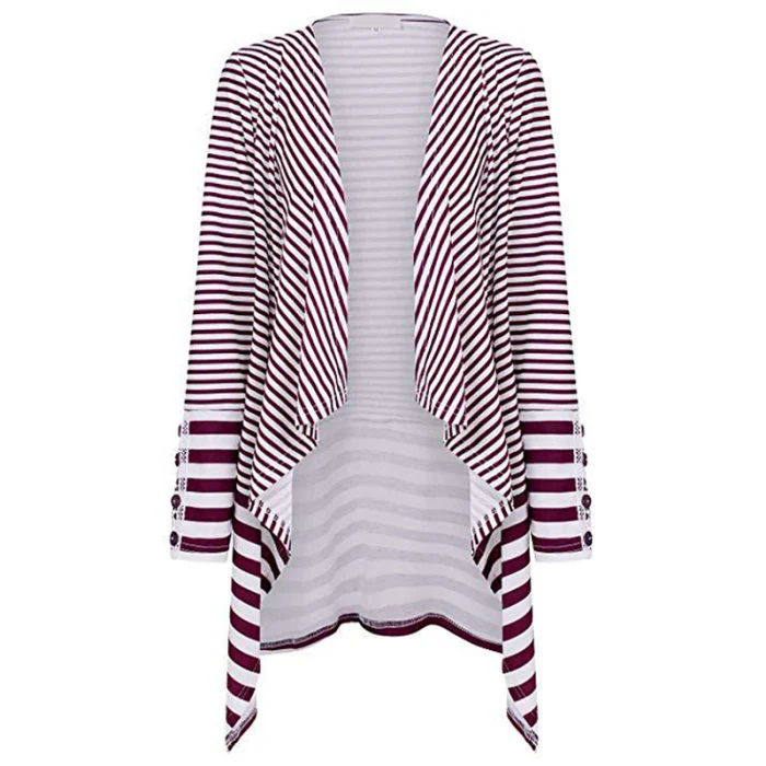 Женское повседневное пальто-кардиган в полоску с длинным рукавом для осени и пляжа FDC99