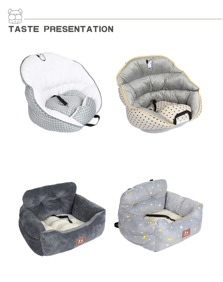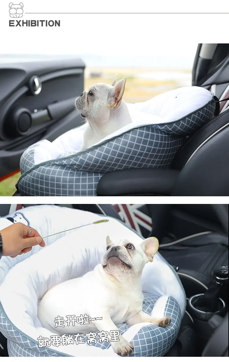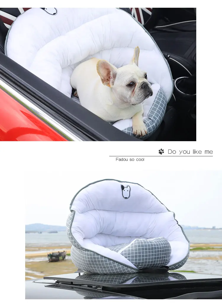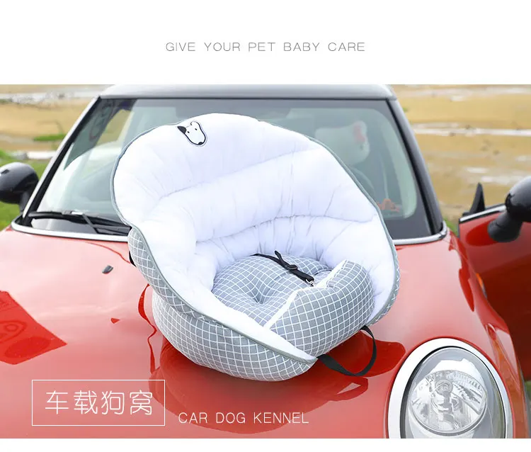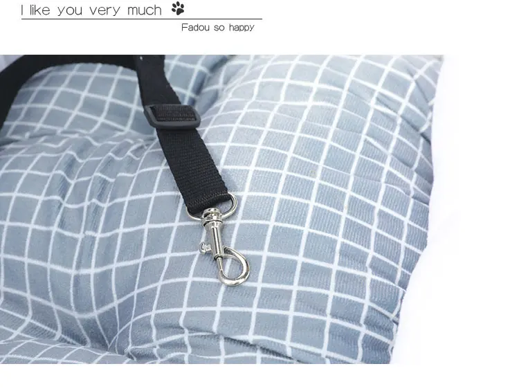 1. Фиксированное положение ремня безопасности 2. Откройте заднюю розетку, отрегулируйте положение сиденья и закрепите Питомник Собаки в положении головы и подушки. 3. Зажим вставляется в зазор спинки сидения, чтобы предотвратить перемещение собачьего питомника вперед и назад. 4. Поместите собаку в гнездо, пристегните тяговую пряжку, чтобы собака не сломалась.